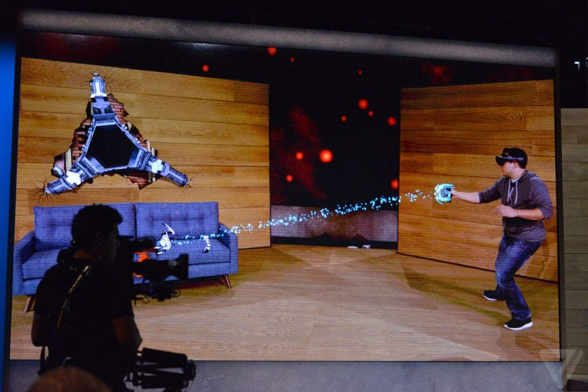 با پوشیدن هولولنز شما یک اسلحه لیزری هولوگرام خواهید داشت و با آن میتوانید به نبرد با روباتها بروید. اسلحه کاملا با دست شما حرکت میکند و حس میکنید که واقعا سلاح به دست دارید. وقتی با شمشیر به روباتهای هولگرامی که در اتاق شما دیده میشوند میجنگید نیز حسی کاملا واقعی خواهید داشت. دمویی که از این بازی پخش شد شگفتانگیز بود.
