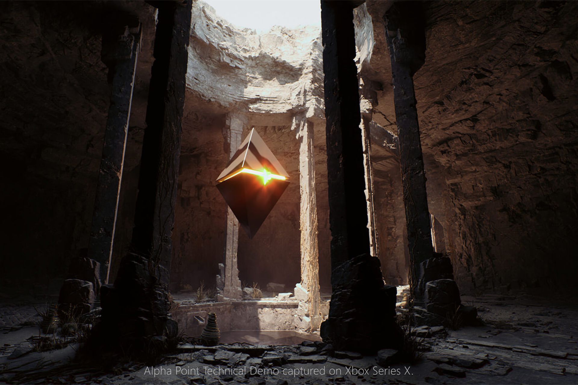 تیم کوالیشن که طی سالیان اخیر با ساخت بازیهای سری Gears of War بین گیمرها شناخته میشود، دو ویدیوی مختلف از اجرا و نمایش خروجیِ آنریل انجین ۵ روی ایکس باکس سری ایکس منتشر کرده است. اولین ویدئو، یک دموی فنی با نام «آلفا پوینت» است و مثل همان دمو که سال گذشته روی پلی استیشن 5 نمایش داده شد، منطقهای کوهستانی و غارمانند را نمایش میدهد که تابش نور سفید و طلایی خورشید روی ساختارش، یک فضای چشمنواز پدیده آورده است.