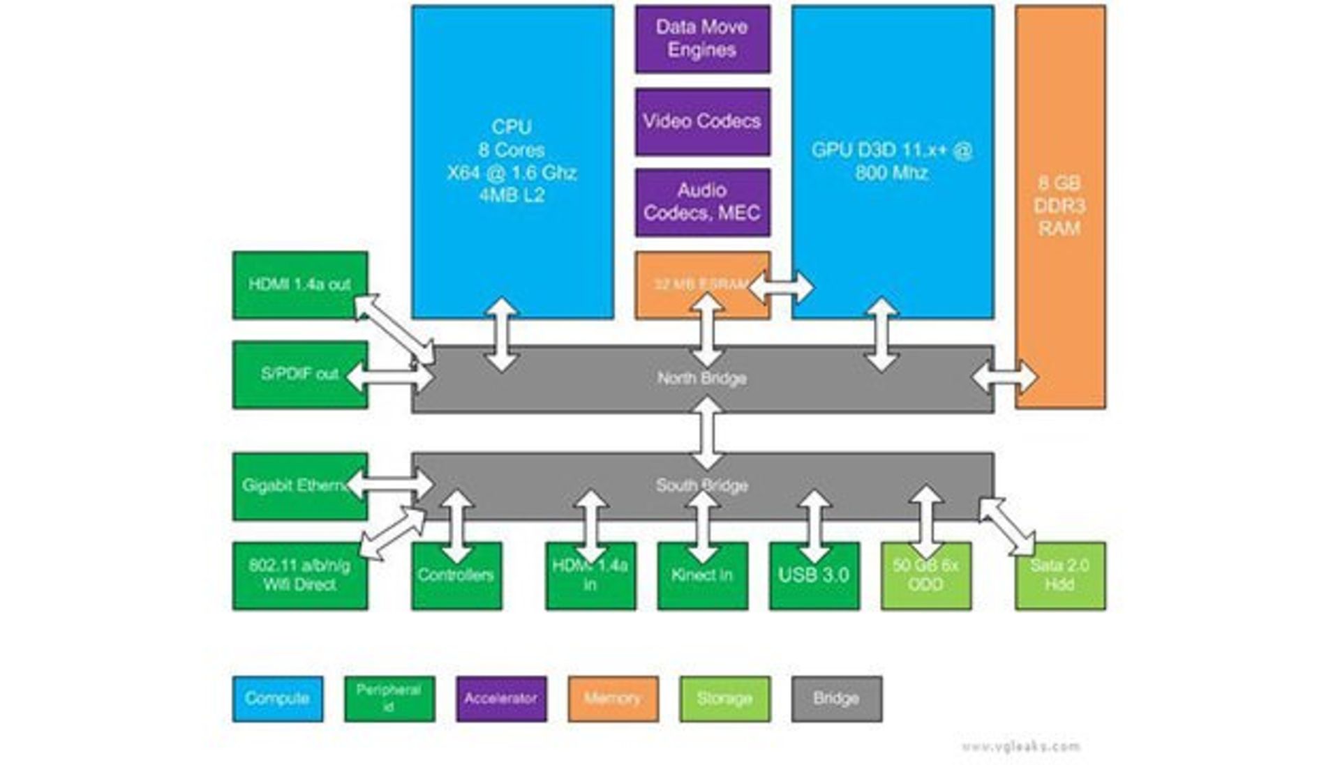 - 32 مگابایت حافظه بسیار سریع ESRAM داخلی با سرعت 102GB/s (گیگابایت در ثانیه)