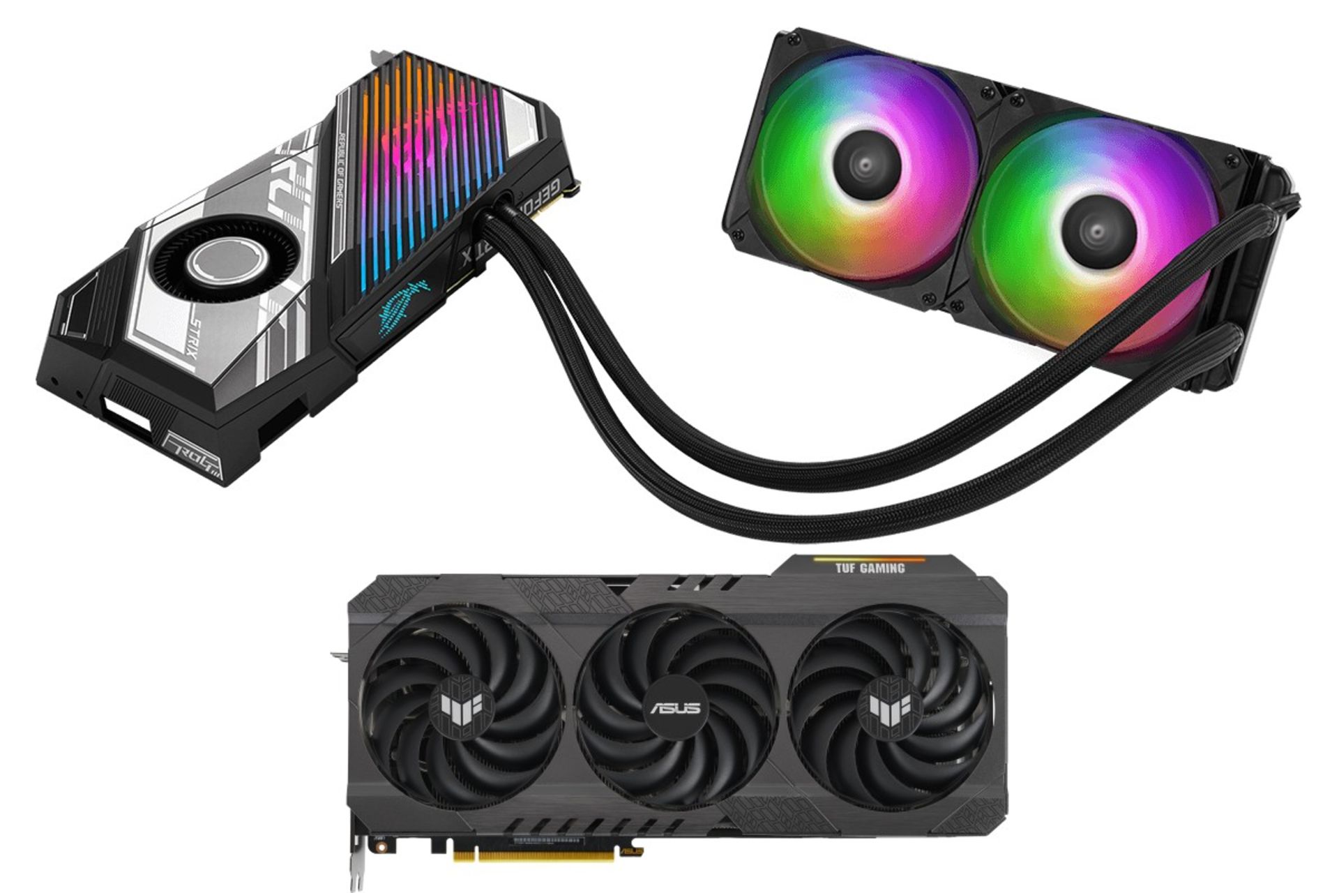 ایسوس از کارتهای گرافیک ROG Strix LC GeForce RTX 3090 Ti و TUF Gaming GeForce RTX 3090 Ti در دو نسخهی استاندارد و اورکلاک (OC) رونمایی کرد؛ پردازندهی گرافیکی GA102 بهکاررفته در کارتهای گرافیک جدید ایسوس از ۱۰۷۵۲ هستهی Cuda بهره میبرد، توان محاسباتی ۴۰ ترافلاپس را روی اعدادی با دقت FP32 ارائه میدهد و به پهنای باند فوقالعادهی ۱۰۰۸ گیگابایتبرثانیه دسترسی دارد.