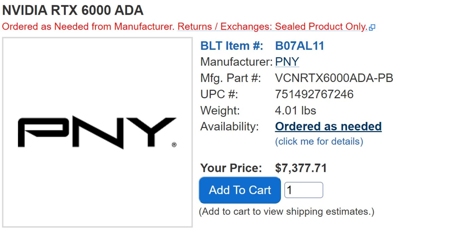 درحالحاضر، خردهفروشان مختلفی در ایالات متحده RTX 6000 را با قیمتی بین ۷٬۳۷۸ تا ۸٬۲۱۰ دلار میفروشند؛ اما ممکن است در آینده بتوان آن را با قیمتهای ارزانتری هم خرید.