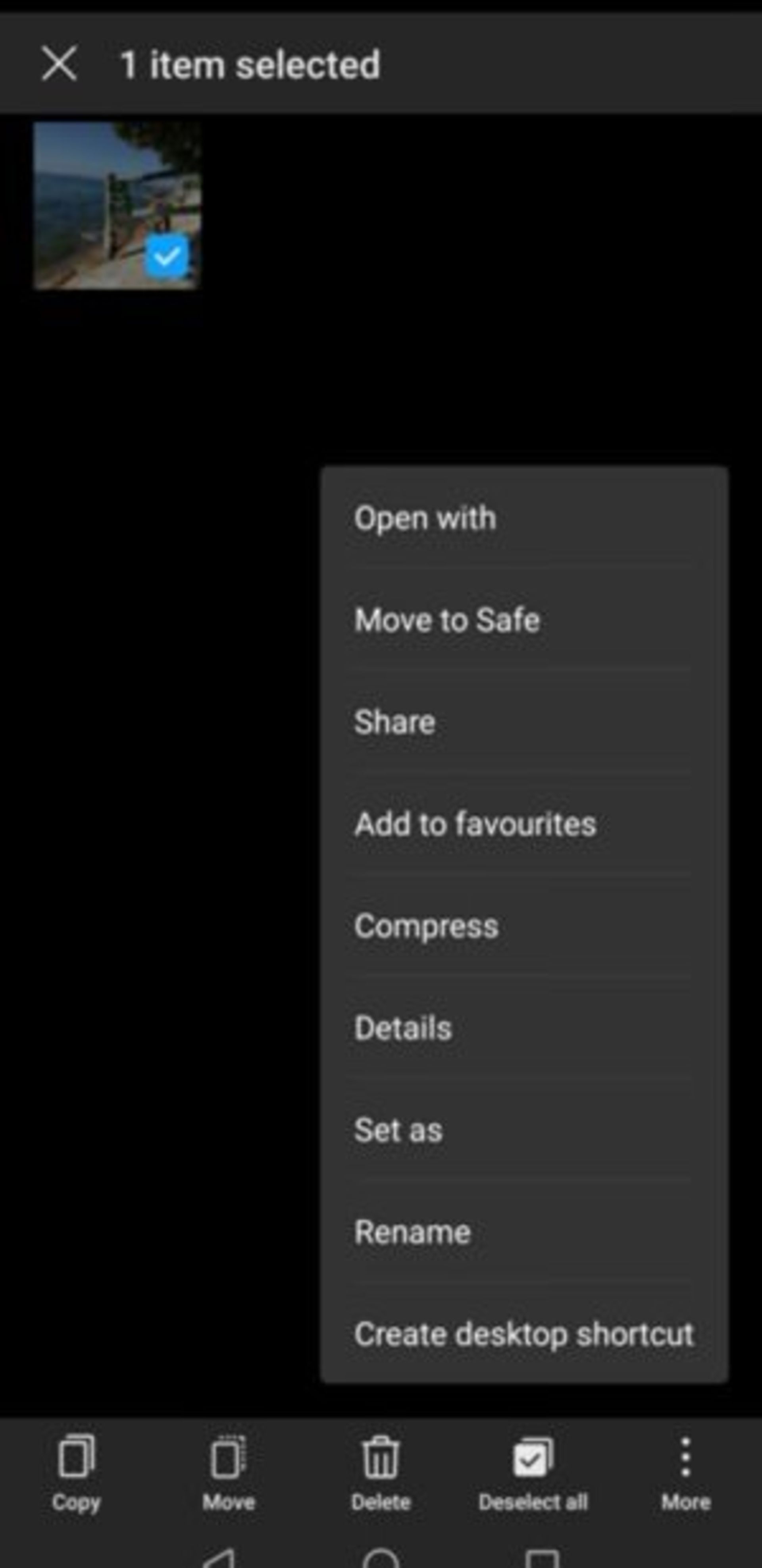 برای محافظت امن از فایلها باید مسیر Settings > Security and privacy > App lock را دنبال یا اپلیکیشن فایلها را باز و گزینهی Safe را انتخاب کنید. چنانچه میخواهید قابلیت محافظت امن را برای فایلهای جدید فعال کنید، فایل مورد نظر را انتخاب و سپس گزینههای More و Move to safe را به ترتیب انتخاب کنید.