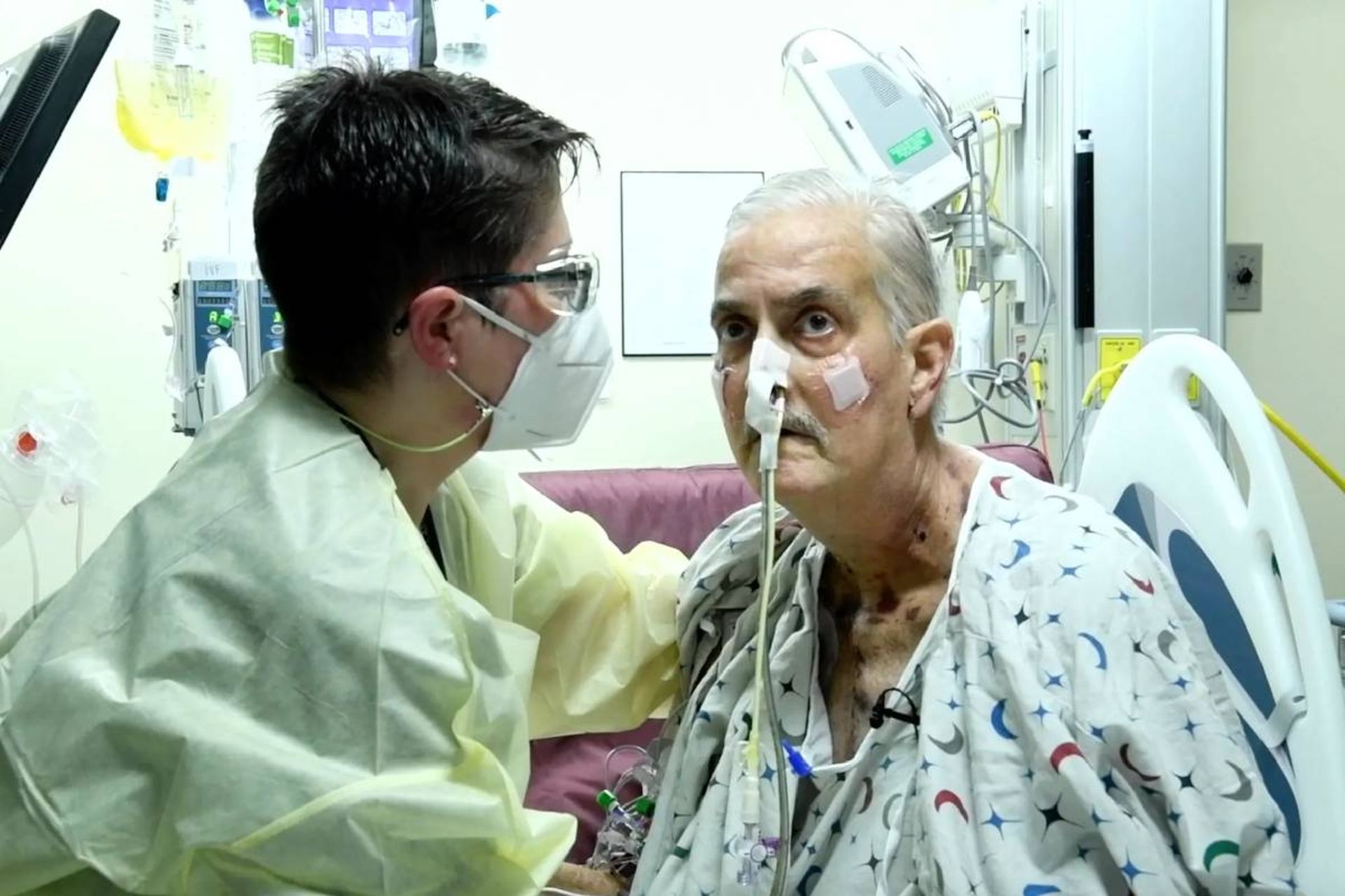 دیوید بنت، دریافتکننده قلب خوک در کنار دکتر بارتلی گریفیث از دانشگاه مریلند که جراحی پیوند قلب او را انجام داد.