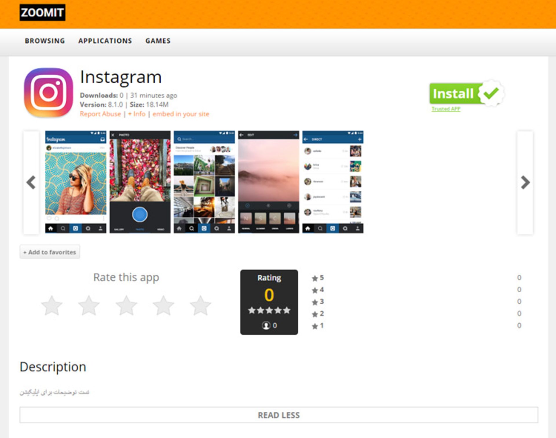 - برای ثبت یک برنامه نیازی نیست که حتما توسعهدهندهی آن باشید و میتوانید هر اپلیکیشن دلخواهی مانند اینستاگرام را در مارکت خود آپلود کنید. این ویژگی بخصوص برای افرادی که قصد ساخت یک آرشیو کامل را دارند بسیار مفید خواهد بود.