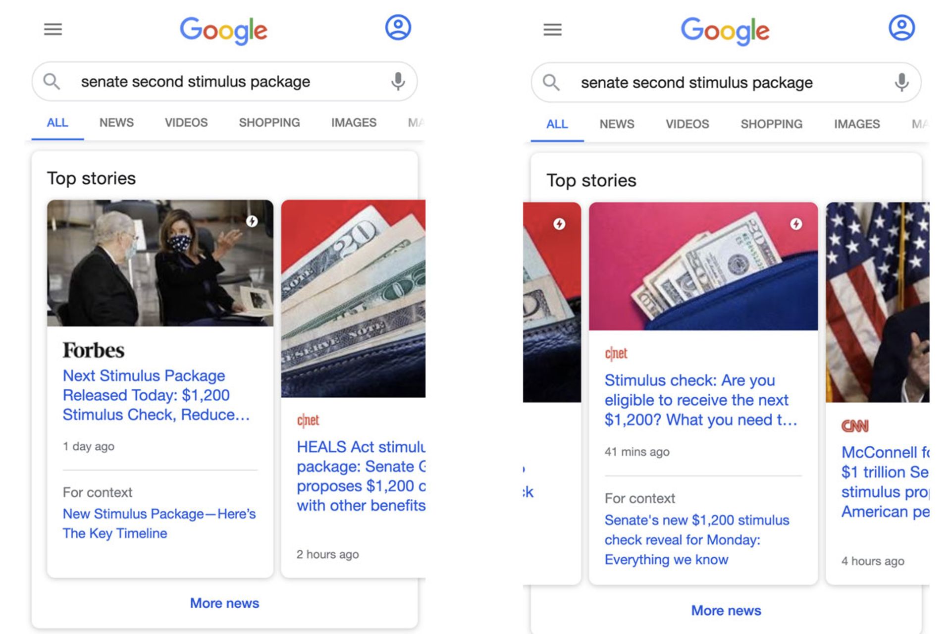 تغییر طراحی و قابلیت جدید گوگل بهراحتی به چشم نمیآید. البته با دقت در عکسهای منتشرشده، بخشی بهنام for context در زیر تیتر خبر اصلی دیده میشود تا دیدگاهی کلیتر نسبت به موضوع ارائه کند. ظاهرا قابلیت جدید گوگل برای انتقال ترافیک ورودی از یک منبع خبری به دیگری طراحی نشده است و تنها ارائهی اطلاعات کلی و مرتبط را در نظر دارد. فیسبوک نیز قابلیتی مشابه بهنام About This Content دارد که مطالب مرتبط با یک موضوع را از همان وبسایت اصلی به کاربر نمایش میدهد. گوگل هم قبلا قابلیتهایی مشابه به نامهای knowledge panles و featured snippets ارائه کرده بود. این قابلیتها، کاربر را به اطلاعات بیشتر پیراکون موضوعهای متفاوت هدایت میکرد.