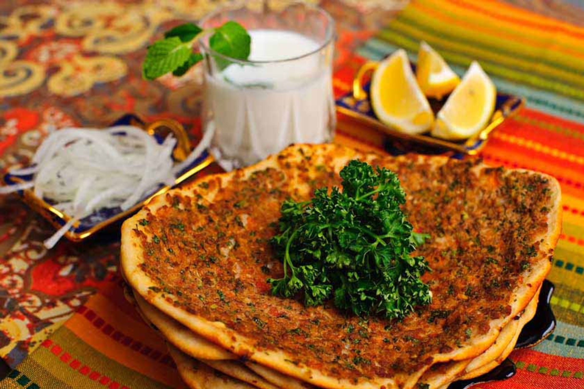 Lahmacun در ترجمههای متداول بهعنوان پیتزای ترکیه شناخته میشود و شیوه تلفظ آن نیز lah mah joon است. درواقع Lahmacunیک نوع ماده غذایی است که در آن لایهای نان و ورقههایی از گوشت وجود دارد و مواد مختلفی نیز به عنوان چاشنی درکنار آن سرو میشوند. این غذا اغلب بهصورت تازه پخت و سرو میشود و حتی میتواند برای دو یا سه وعده غذایی کافی باشد. پیاز و گشنیز از جمله موادی هستند که باعث میشوند این غذا حس و حال متفاوتی داشته باشد و یکی از بهترین چاشنیها برای گوشت گاو هستند. گاهی درکنار این غذا مقداری بادام زمینی و انار نیز سرو میشود. درواقع Lahmacun نوعی پیتزا است که ساختار طبیعیتری دارد و شکل و شمایل قدیمی خود را نیز حفظ کرده است.