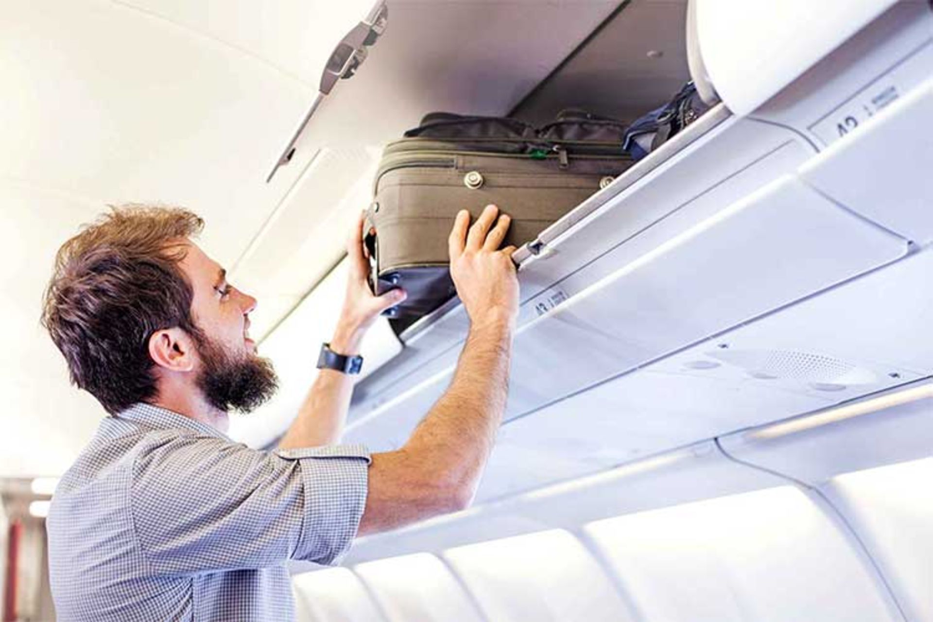 همچنین، برای نگهداری وسایل از فضای مخصوص بالای صندلی خود استفاده کنید و هرگز چمدان خود را در راهرو قرار ندهید. علاوهبر این، زمانیکه چمدان را از فضای بالایی خارج میکنید، مراقب باشید، زیرا ممکن است چمدان طوری قرار گرفته باشد که روی سر شما یا فرد دیگری بیافتد.