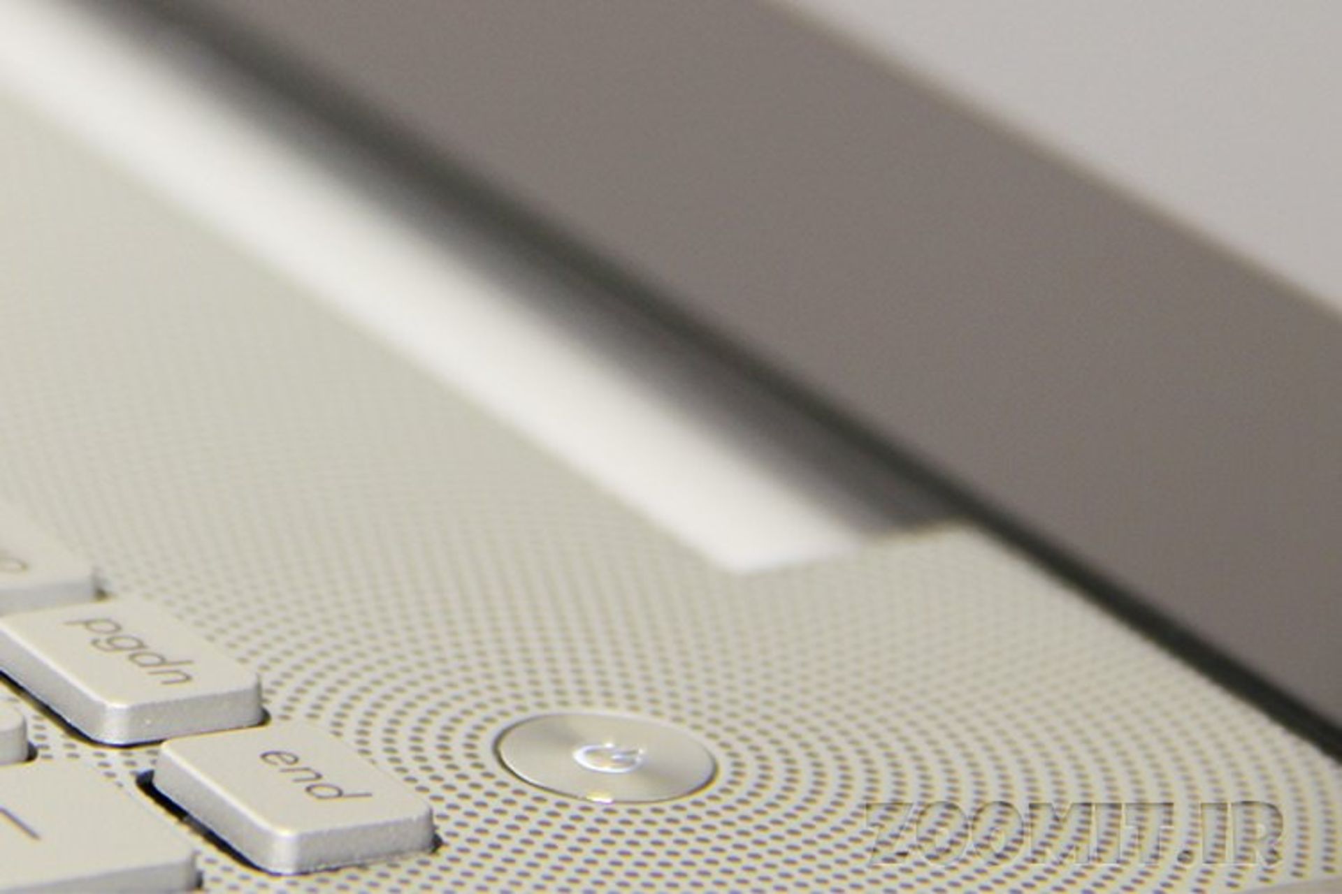 قسمت زیرین دستگاه از جنس پلاستیک باکیفیت ساخته شده و علاوه بر شبکههای هوا برای خروج حرارت، در قسمت جلوی آن نیز یک اسپیکر بزرگ تعبیه شده است. وقتی در لپتاپ را باز میکنید اولین موضوعی که توجه شما را جلب میکند طراحی مشبک بدنه در دو گوشه فوقانی صفحهکلید است. این بخشها در واقع خروجی اسپیکرهای قدرتمندی هستند که در این لپتاپ مالتیمدیا گنجانده شدهاند. در مرکز این بخشها نیز دکمه پاور (در سمت راست) و دکمه Instant On (در سمت چپ) قرار گرفتهاند.
