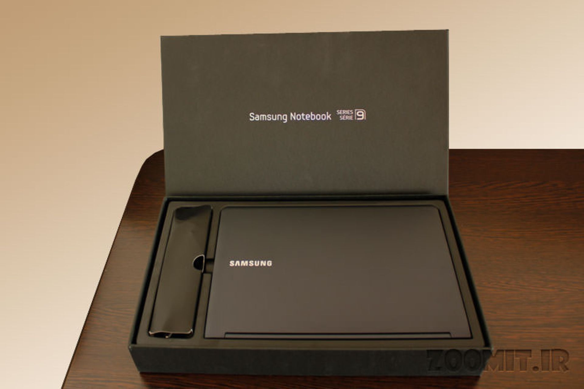 سامسونگ لپتاپهای برتر خود را در سری ۹ قرار میدهد، این موضوع از همان ابتدای کار و با نگاهی به بستهبندی محصول، حس میشود. این شرکت نهایت دقت خود را در ساخت یک کالای با کیفیت به کار گرفته است. بستهبندی محصول کاملاً متفاوت از لپتاپهای سری ۵ و ۷ بوده و برای هر کدام از قسمتها به شکل زیبایی جای خاصی در نظر گرفته شده است. در داخل جعبه اولترابوک سری ۹ سامسونگ: یک لپتاپ ۱۳.۳ اینچی، کابل برق، آداپتور مربع شکل، مبدل پورت شبکه کوچک به شبکه استاندارد و دفترچههای راهنما وجود دارد.