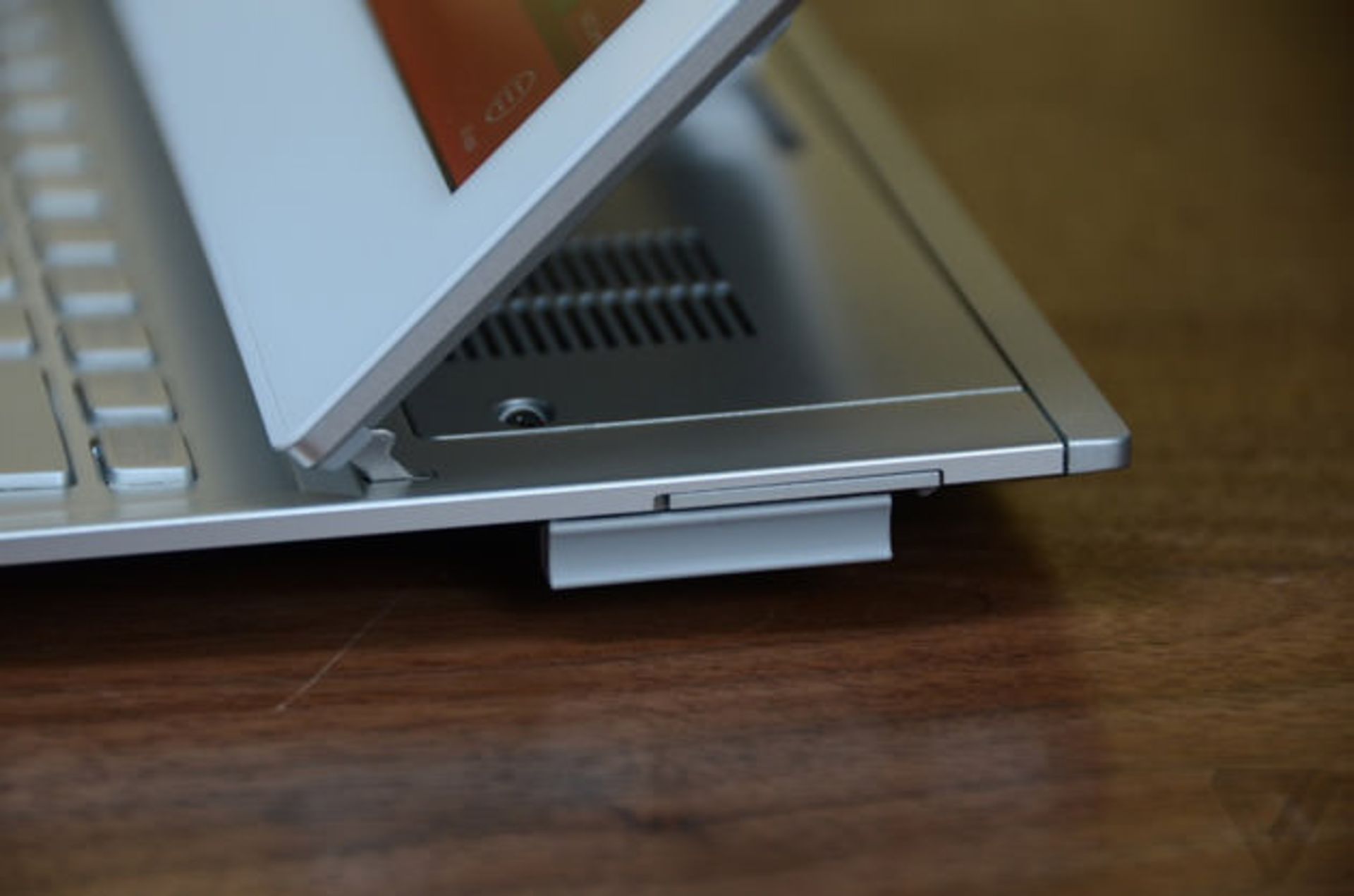 Duo 13 مجهز به صفحه نمایش 13.3 اینچ با رزولوشن 1080p است و حدود 1.95 سانتی متر ضخامت دارد. لولای پشت دستگاه هر چند ظریف و باریک است، اما کاملا مقاوم و مستحکم ساخته شده و نیازی به نگرانی برای شکسته شدن آن وجود ندارد.