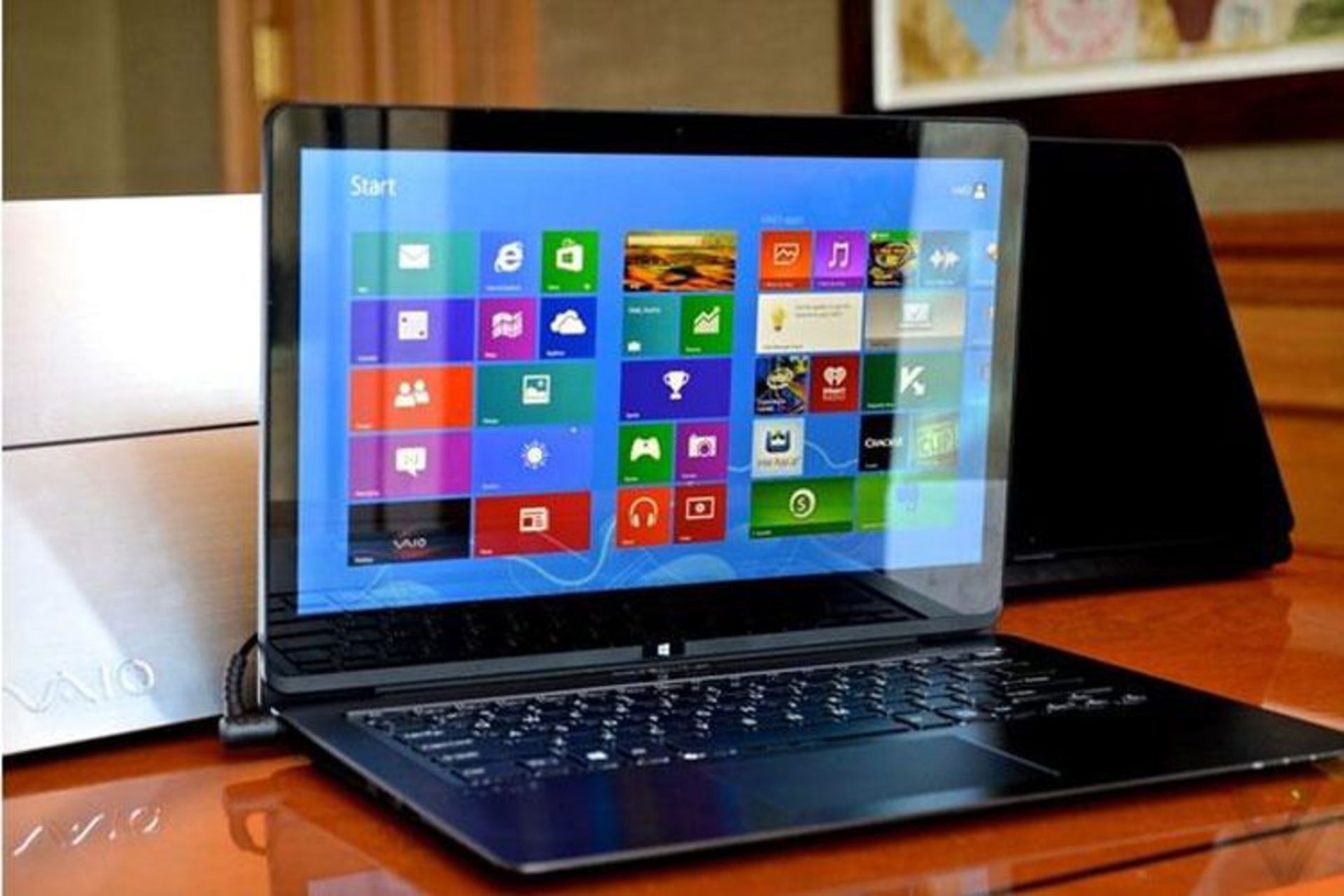 نخست به VAIO Flip PC میپردازیم. یک لپ تاپ منعطف و منحصر به فرد که میانهی پایینی بازار را هدف قرار داده است. بر روی درب دستگاه، قطعهای به عنوان نقطه اتکای نمایشگر قرار گرفته که موجبات تغییر شکل Flip به چندین شکل و حالت گوناگون را فراهم میآورد. میتوانید آن را مانند یک لپ تاپ مورد استفاده قرار دهید، یا نمایشگر را چرخانده و آن را به یک تبلت تبدیل کنید. شاید هم بخواهید دستگاه را از صفحه کلید، بر روی سطح میز قرار داده و از قسمت تحتانی آن به عنوان یک استند استفاده کنید. با این ترفند، زوایای دید بینظیری در اختیار کاربر قرار میگیرد. شما میتوانید بسته به موقعیت خود، بهترین زاویه و حالت را مورد استفاده قرار دهید.