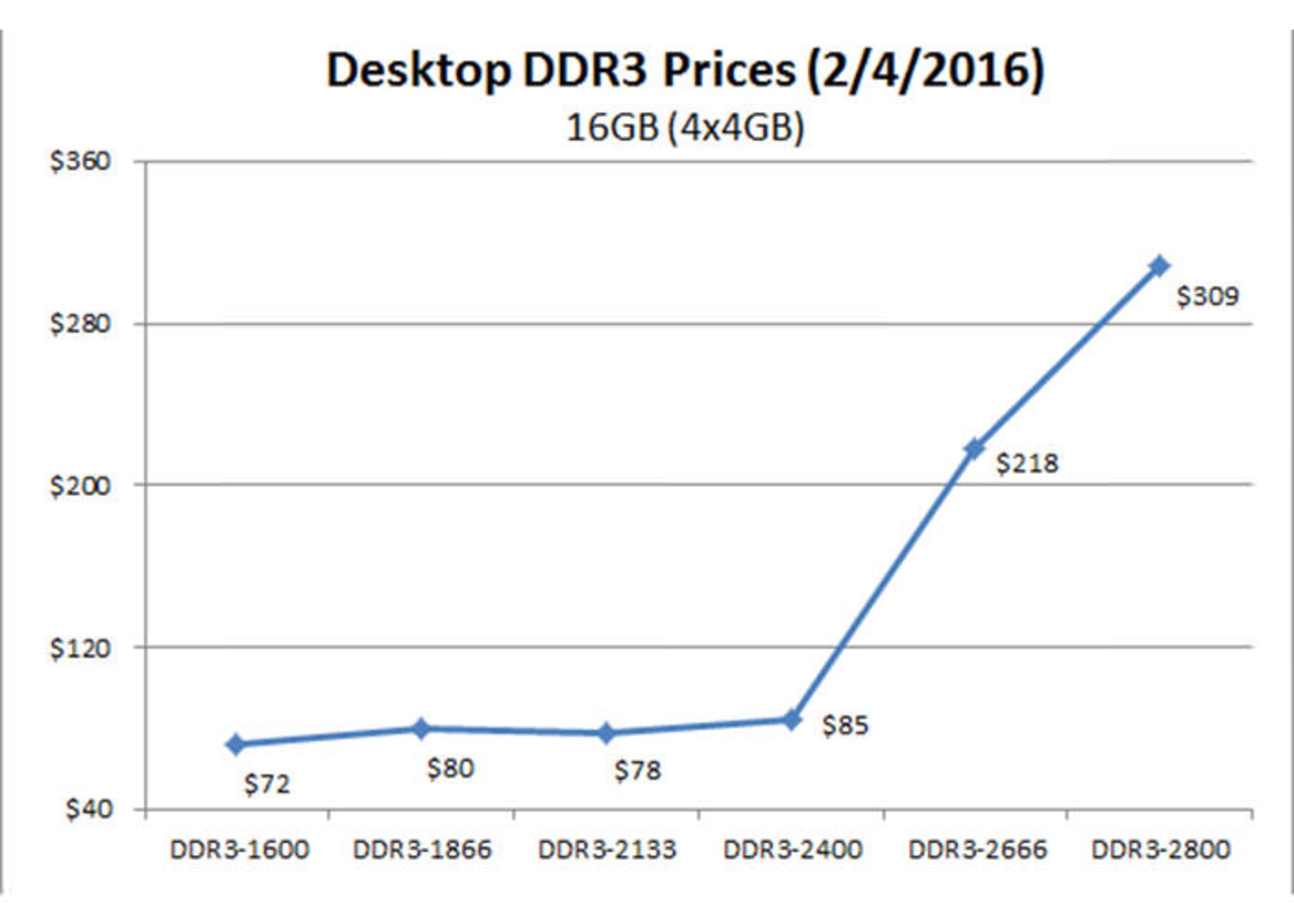 افزایش قیمت شدید رمهای DDR3 در فرکانسهای بالاتر از ۲۴۰۰ مگاهرتز، نه تنها بیانگر علاقهی آنها به خالی کردن جیب شما است، بلکه نشاندهندهی دشوار بودن گرفتن عملکرد خوب از این رمها در فرکانسهای مذکور است. DDR3ها برای کار کرد در چنین فرکانسهای بالایی طراحی نشدهاند. این نکته را میتوان از افزایش قیمت شدید این قطعات در تغییر فرکانس از ۲۴۰۰ به ۲۶۶۶ مگاهرتز فهمید. در واقع چون این رمها برای کارکرد در چنین فرکانسهای بالایی طراحی نشدهاند، سازندگان مجبورند با هزینه های بسیار، ساختار آنها را دستکاری کرده و این رمها را آمادهی کار در چنین فرکانسهایی کنند. بنابراین قیمت فروش آنها نیز بالا میرود.