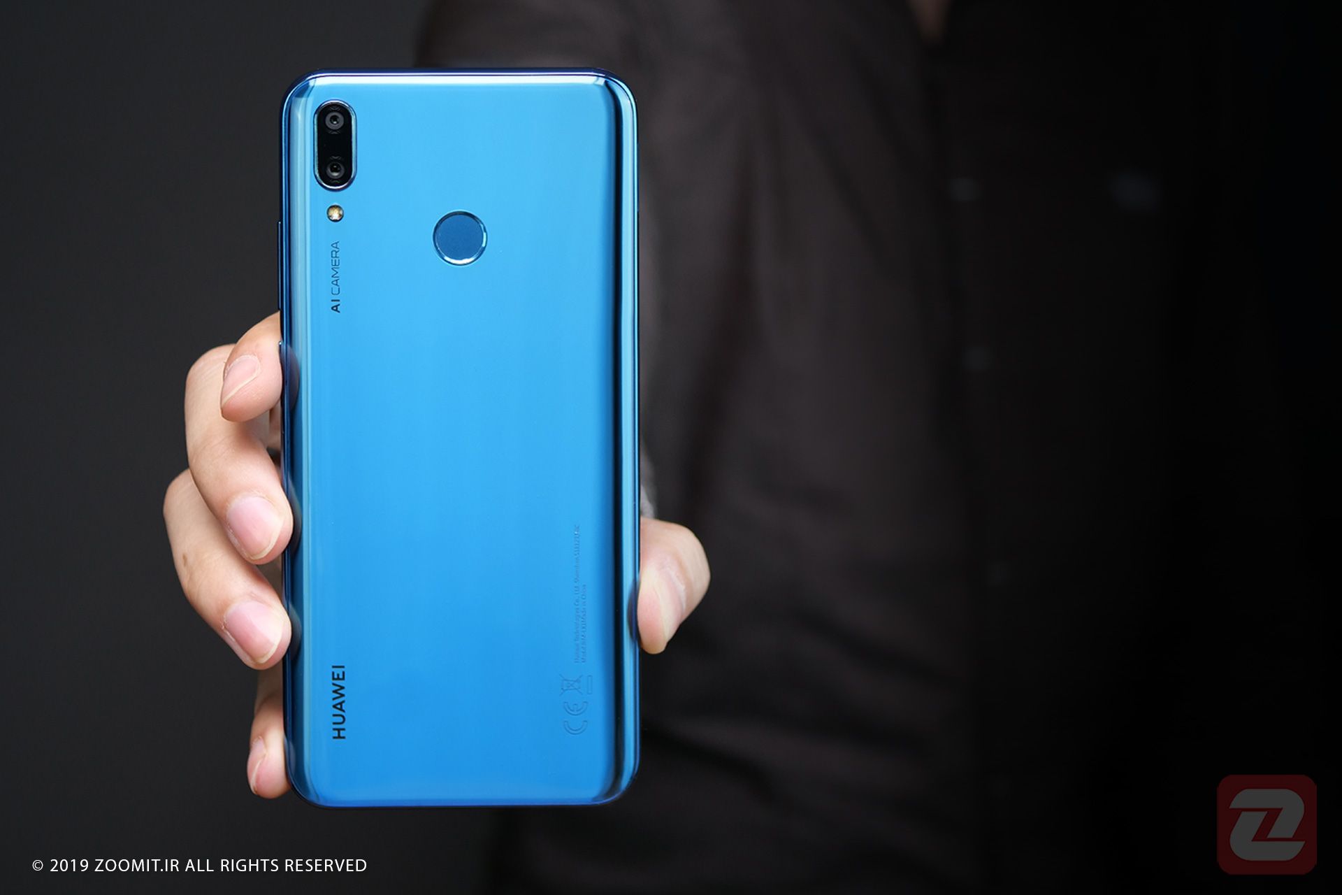 گوشی هواوی Y9 جدید در سه رنگ مشکی و آبی و بنفش شفقی (Aurora Purple) روانهی بازار میشود که رنگ سوم درحقیقت، گرادیانی از رنگ صورتی تا بنفش را ارائه میدهد؛ چیزی شبیه به آنچه در گوشی پی ۲۰ پرو تجربه کرده بودیم. ما نسخهی آبی Y9 را برای بررسی دراختیار داشتیم. در این نسخه، فریم آلومینیومی دستگاه نیز پوششی به رنگ آبی براق روی خود دارد. دوربین دوگانهی Y9 2019 همراه فلش LED با چینشی عمودی، در گوشهی سمت چپ پنل پشتی جای گرفتهاند. حسگر اثرانگشت خازنی مانند اغلب گوشیهای میانرده و اقتصادی هواوی، در نیمهی بالایی پنل پشتی قرار گرفته و دسترسی به آن آسان است.