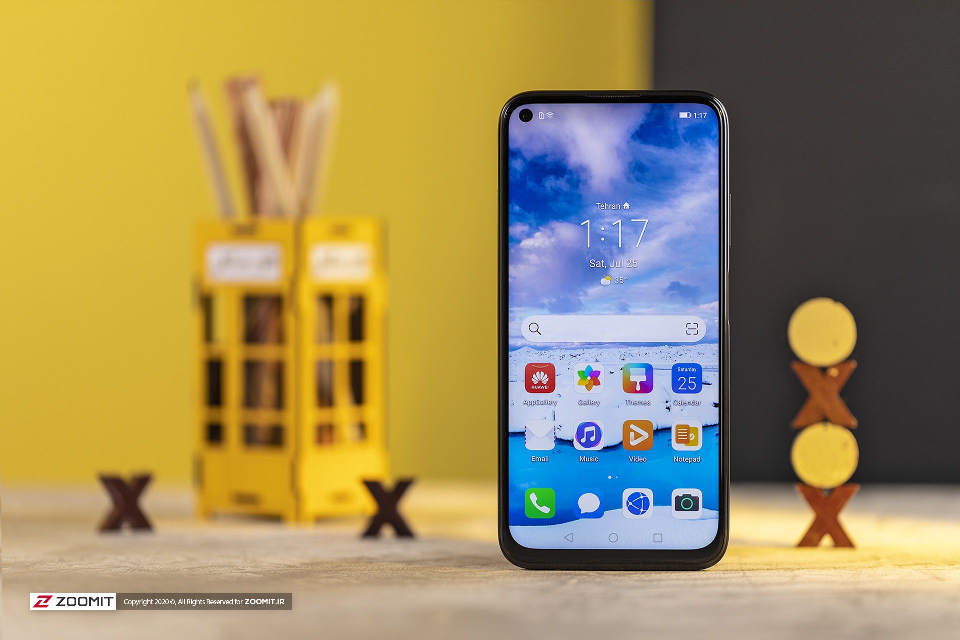 از بحث کیفیت ساخت که بگذریم، بررسی طراحی گوشی را از جلوی آن شروع میکنیم که شباهت خیلی زیادی به گوشی «نوا 5 تی» دارد. لبههای چهار طرف نمایشگر بهجز لبه پایینی، باریک است و این موضوع باعث شده تا نزدیک به ۸۴ درصد از فضای جلوی گوشی دراختیار نمایشگر باشد و هواوی بتواند نمایشگری بزرگ و ۶٫۴ اینچی را در قالب گوشی خوشدست با ابعادی مناسب جای دهد.