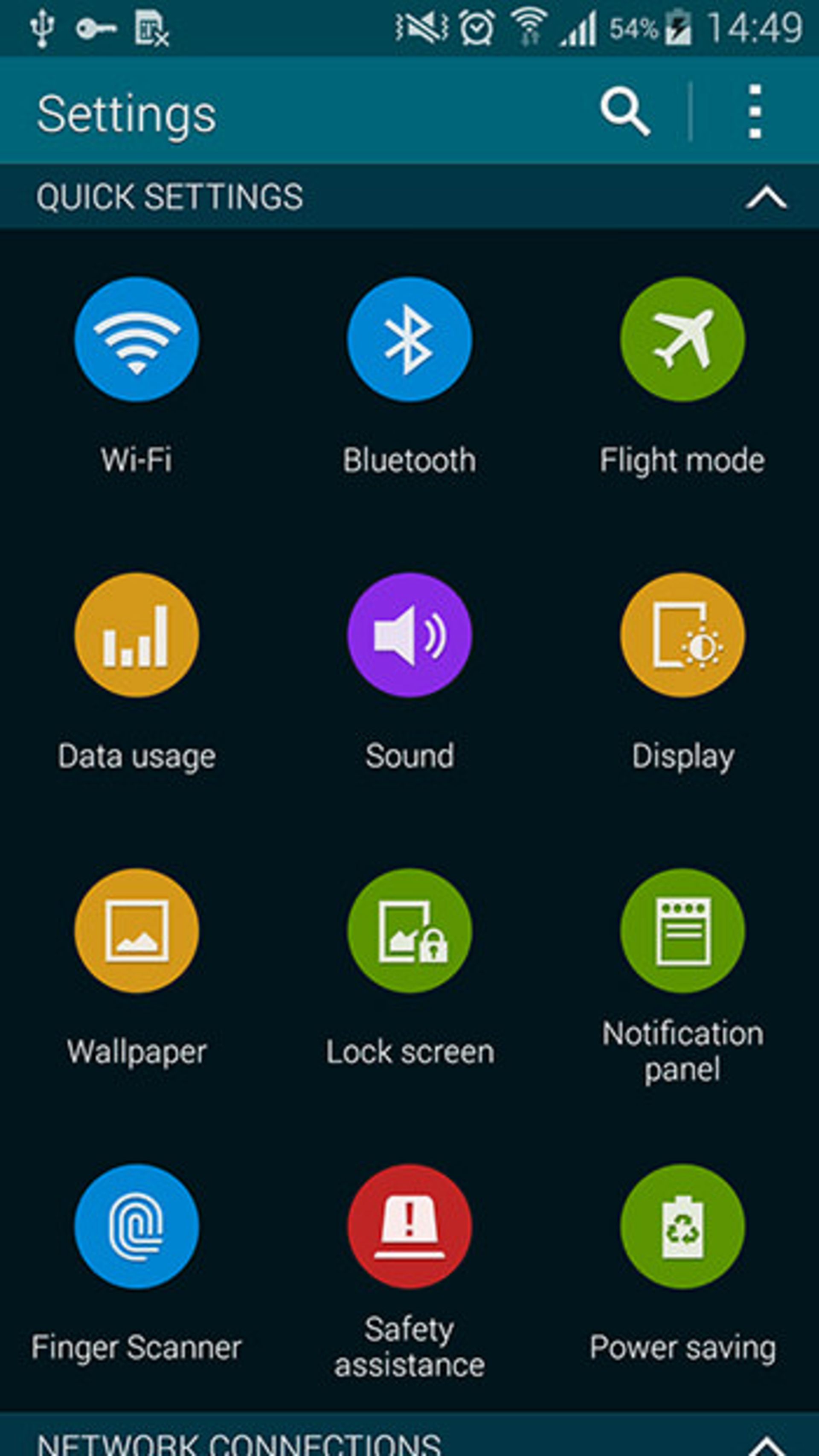 خوشبختانه سامسونگ تنظیمات و مواردی را که موجب سردرگرمی بیش از حد کاربران در S4 بود را تا حد امکان از رابط کاربری جدید خود دور ساخته است، البته منوی تنظیمات همچنان اندکی گیجکننده و شلوغ است و در بین انبوهی از گزینهها و قابلیتهای سامسونگ، رسیدن به مقصد مدنظر کمی دشوار میکند. رابط کاربری سامسونگ همچنان غنی از امکانات گوناگون است که با چیدمان یکپارچهتر و طراحی تخت بهبود یافته است.