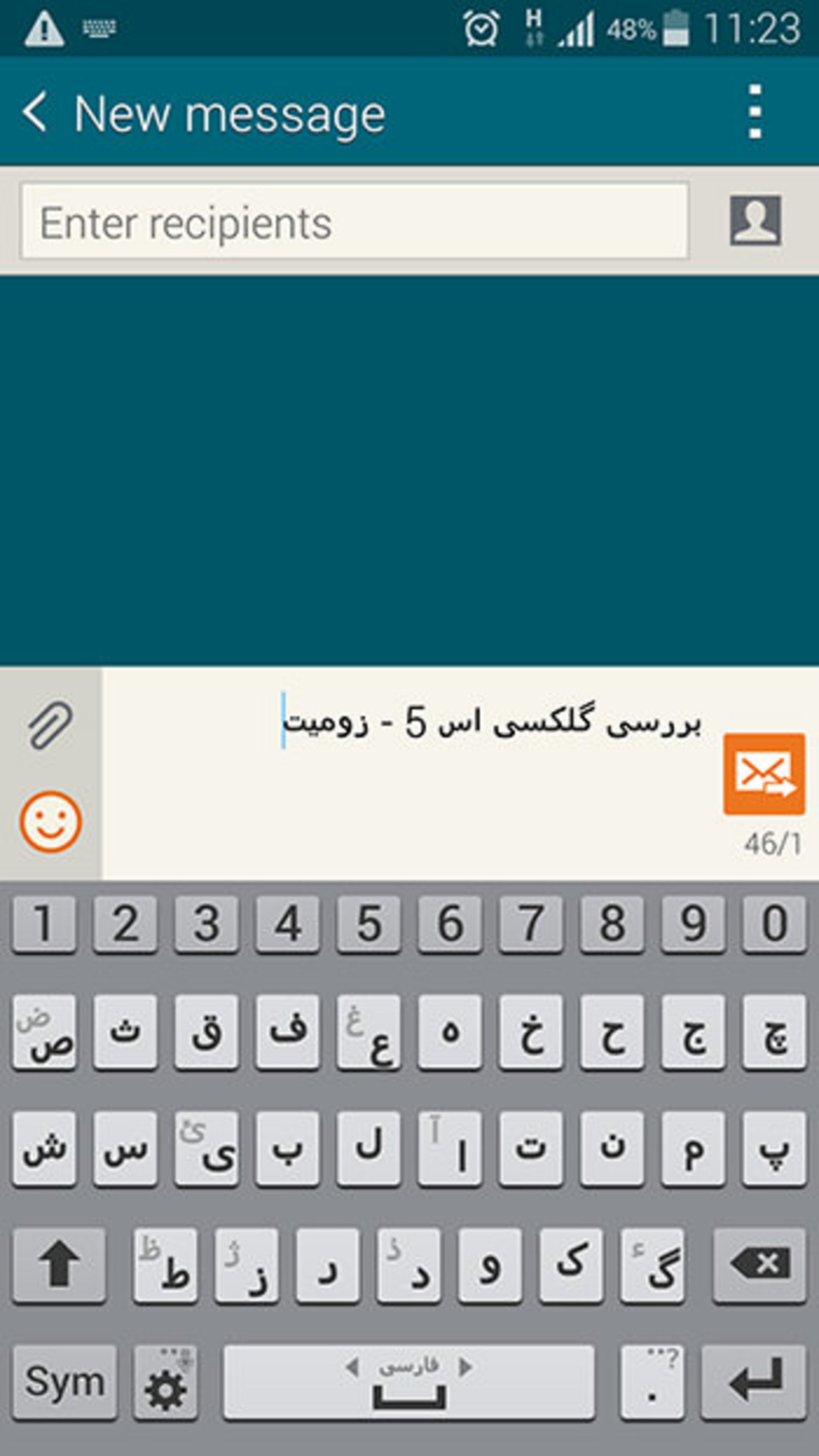 کیبورد لمسی سامسونگ بسیار کاربردی و راحت است و این تلفن از زبان فارسی بهطور کامل پشتیبانی میکند.