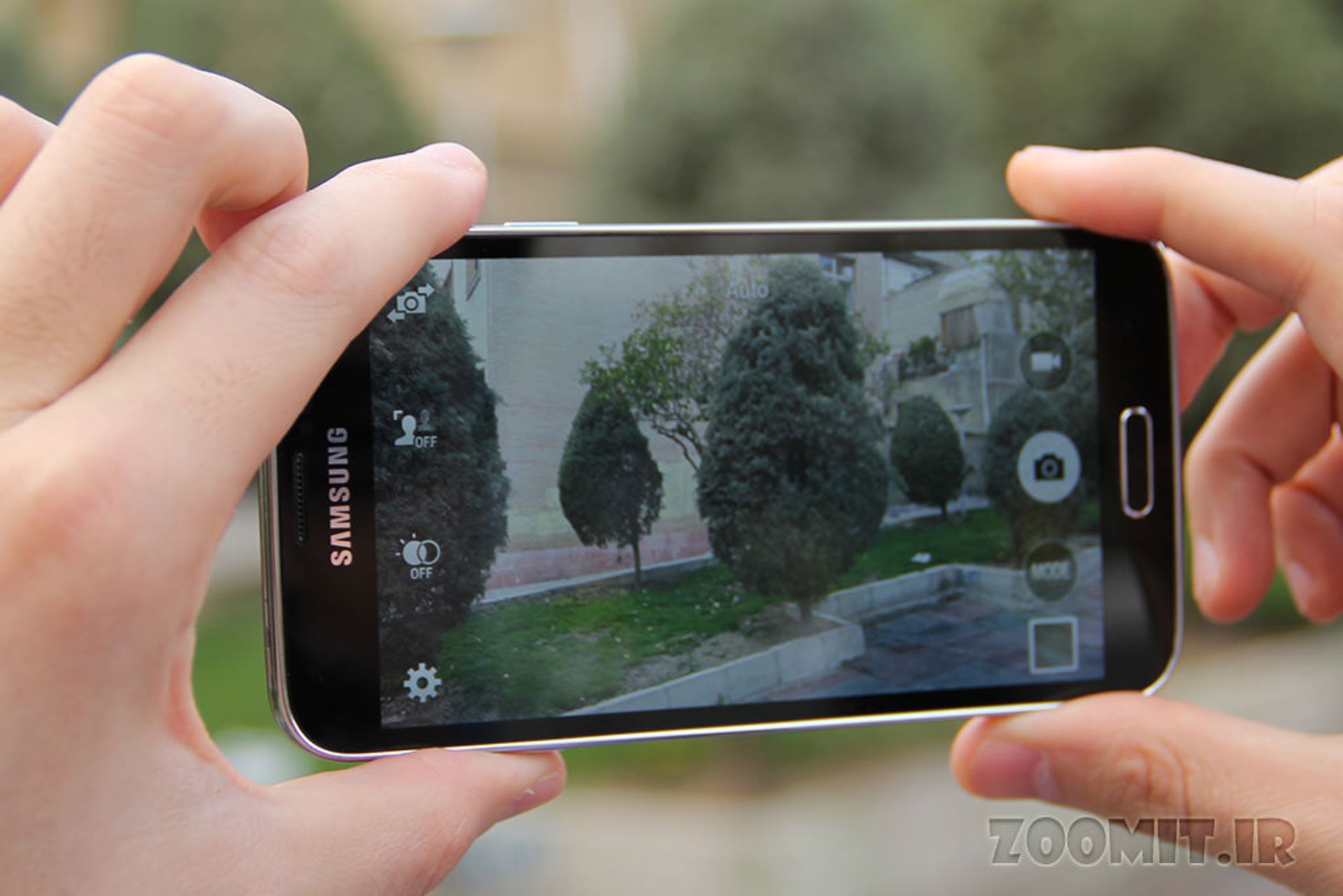 پرچمدار جدیدی سامسونگ مثل بسیاری از گوشیهای رده اول بازار، دوربین اصلی 16 مگاپیکسلی دارد که در سمت جلو، دوربین 2 مگاپیکسلی دیگری آن را همراهی میکند. در گلکسی اس 4 از حسگر ساخت سونی استفاده شده بود و نسخهی کوآلکامی یعنی I9505 از تراشهی ساخت کوآلکام بهره میبرد. این بار سامسونگ برای افزایش حاشیهی سود و باتوجهبه سیاستهای کلی خود، از حسگری بهنام ISOCELL استفاده کرده است. در مورد دوربین جلو هم حسگر توسط خود سامسونگ تولید شده است. در توضیح نحوهی عملکرد آیسوسل بهتر است به مقالهی مفصل زومیت مراجعه کنید؛ اما بهطور خلاصه میتوان آیسوسل را اینگونه توضیح داد که برای اجتناب از تداخل نوری و الکترونیکی پیکسلهای مجاور که منجر به تأثیر نور زیاد جذب شده توسط یک پیکسل، روی پیکسل مجاور میشود، از ایزولهکردن استفاده شده است. به همین دلیل نام این تکنولوژی بهصورت اختصاری آیسوسل یعنی سلول ایزوله شده گذاشته شده است. درکنار ایزولاسیون، در ساختار حسگر از چیدمان خاصی به شکل عمودی استفاده شده که سطح مفید جذب نور را افزایش میدهد.