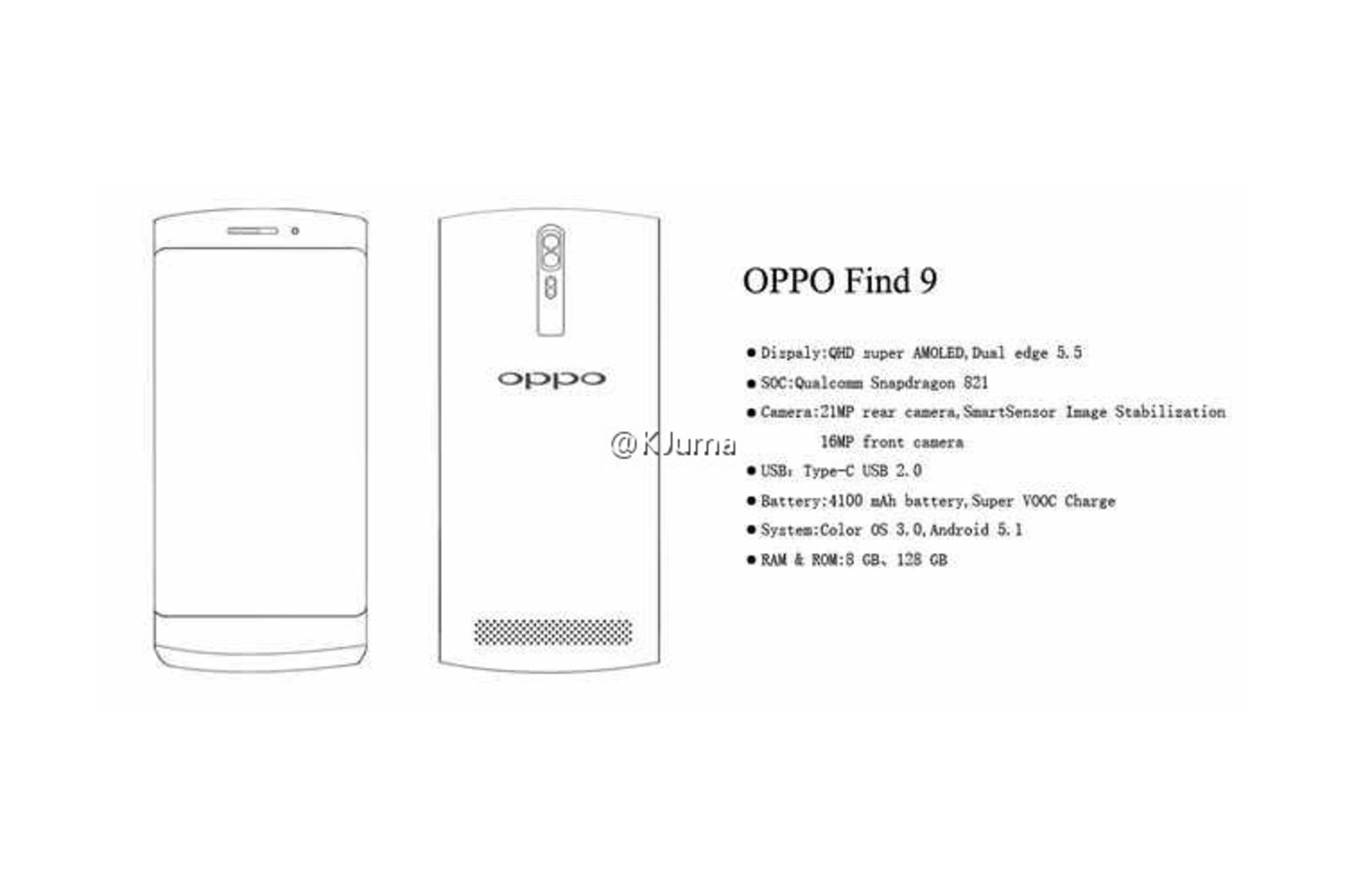 در مشخصات فنی منتشر شده، استفاده از صفحهنمایش ۵.۵ اینچی خمیدهی AMOLED با کیفیت QHD به چشم میخورد. از لحاظ پردازنده نیز، اوپو در این گوشی از اسنپدراگون ۸۲۱ استفاده خواهد کرد و از لحاظ حافظه نیز یک حافظهی رم ۸ گیگابایتی به همراه ۱۲۸ گیگابایت حافظهی داخی برای این گوشی در نظر گرفته شده است. بر خلاف تصاویر منتشر شده از رندر گوشی، در بخش مشخصات اشارهای به دوربین دوگانه نشده و تنها استفاده از لنز ۲۱ مگاپیکسلی به همراه فناوری لرزشگیر هوشمند اوپو (که در مراسم MVC 2016 معرفی شد) تایید شده است. برای دوربین سلفی این گوشی نیز، اوپو از یک لنز ۱۶ مگاپیکسلی استفاده خواهد کرد. از دیگر مشخصات Find 9 میتوان به باتری بزرگ ۴۱۰۰ میلیآمپری با فناوری شارژ سریع اشاره کرد که در عرض یک ساعت به طور کامل شارژ خواهد شد. استفاده از پورت یواسبی نوع سی به همراه اندروید ۵.۱ بر پایهی Color OS نیز در مشخصات منتشر شده به چشم میخورد. البته کارشناسان امیدوارند اوپو در زمان عرضه از اندروید ۶ در این گوشی استفاده کند.