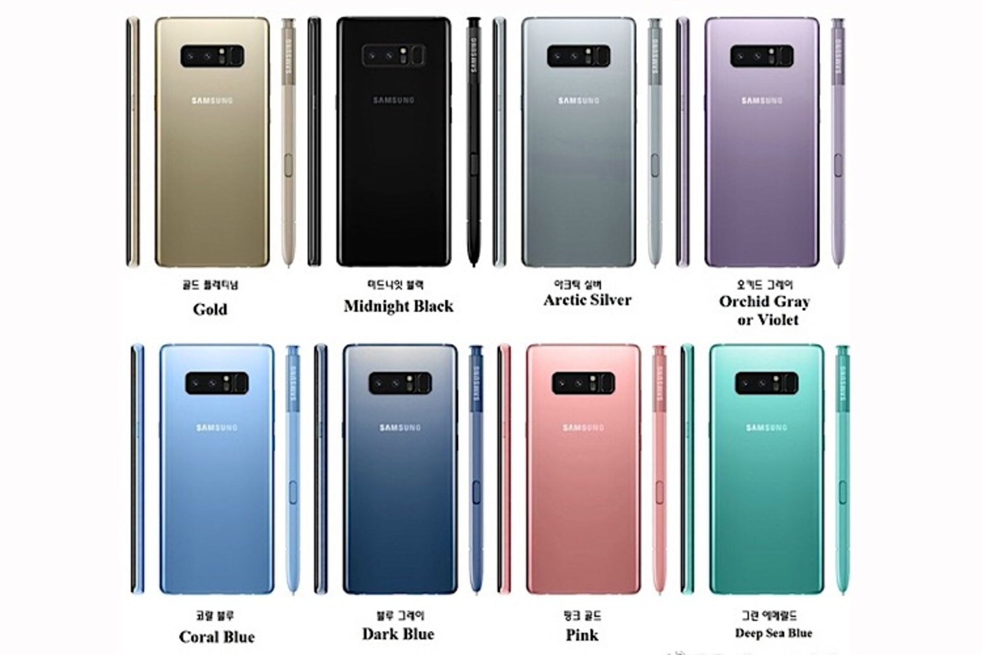 تصویر جدید گلکسی نوت 8، این گوشی را در هشت رنگ نشان میدهد