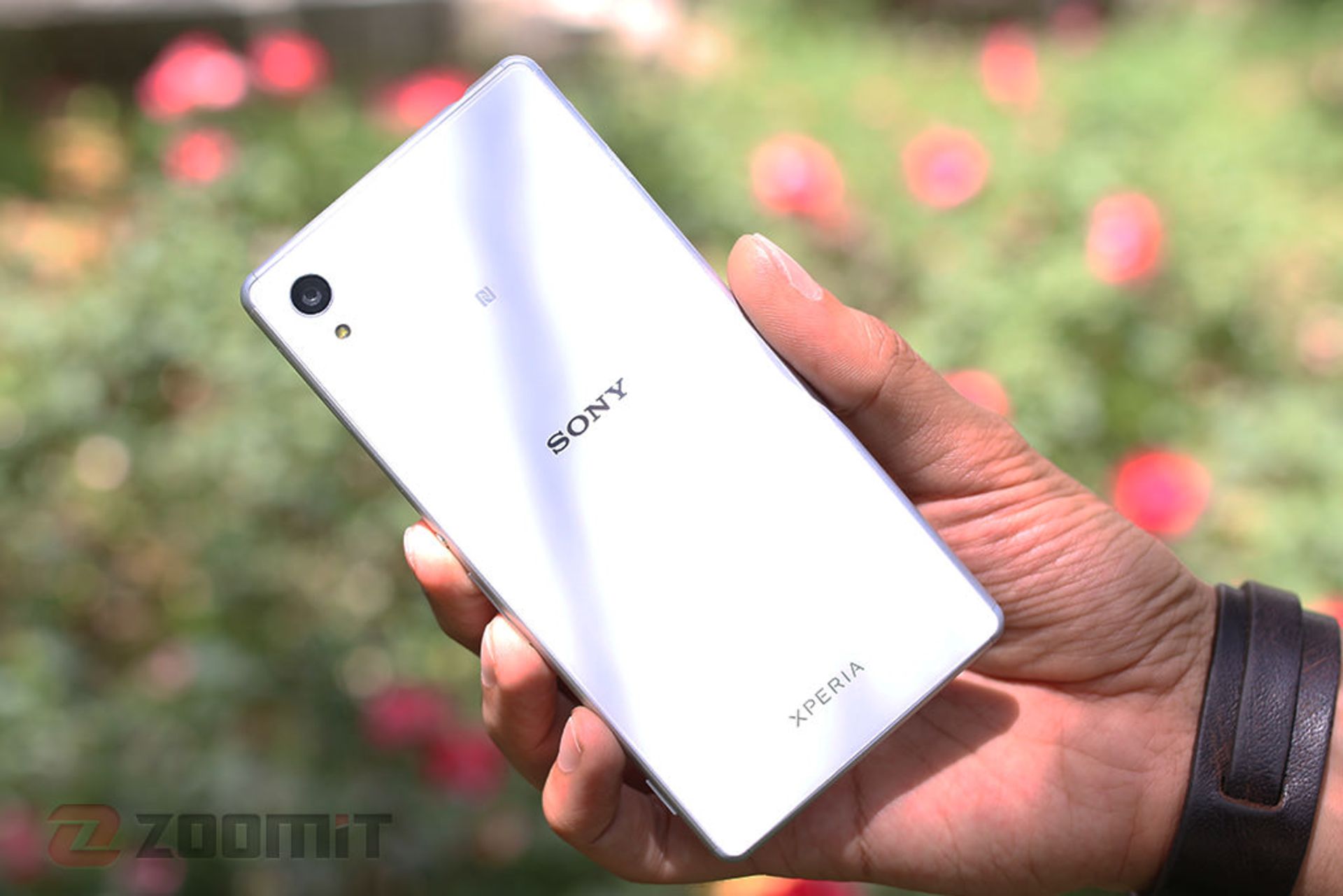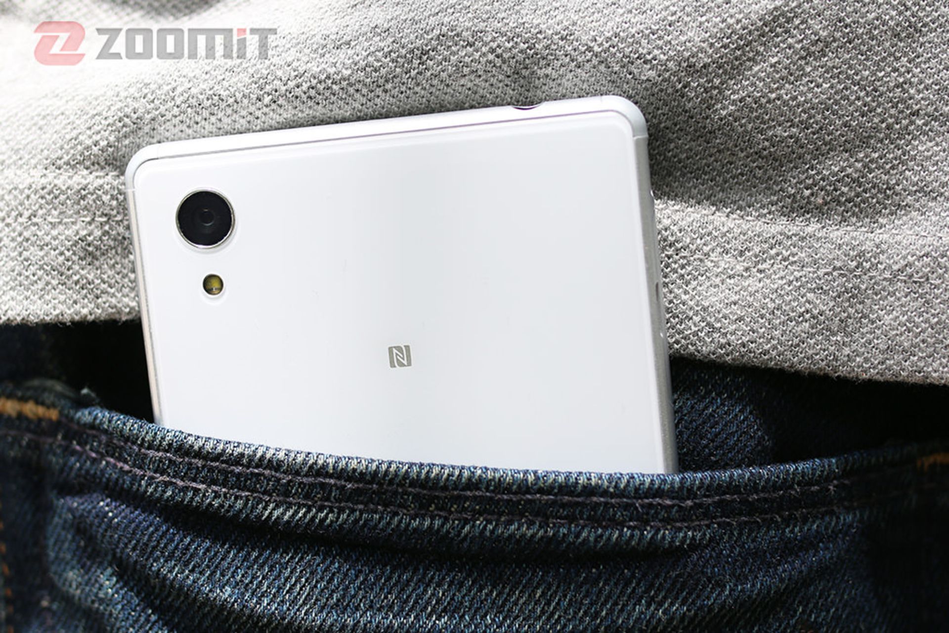 اما پشت گوشی از جنس پلاستیک ضدخش بوده و طراحی یکدستی دارد. بر روی بخش پشتی بدنه، دوربین 13 مگاپیکسلی، فلاش LED، و به ترتیب لوگوی NFC، لوگوی سونی و لوگوی اکسپریا از بالا به پایین دیده میشود.