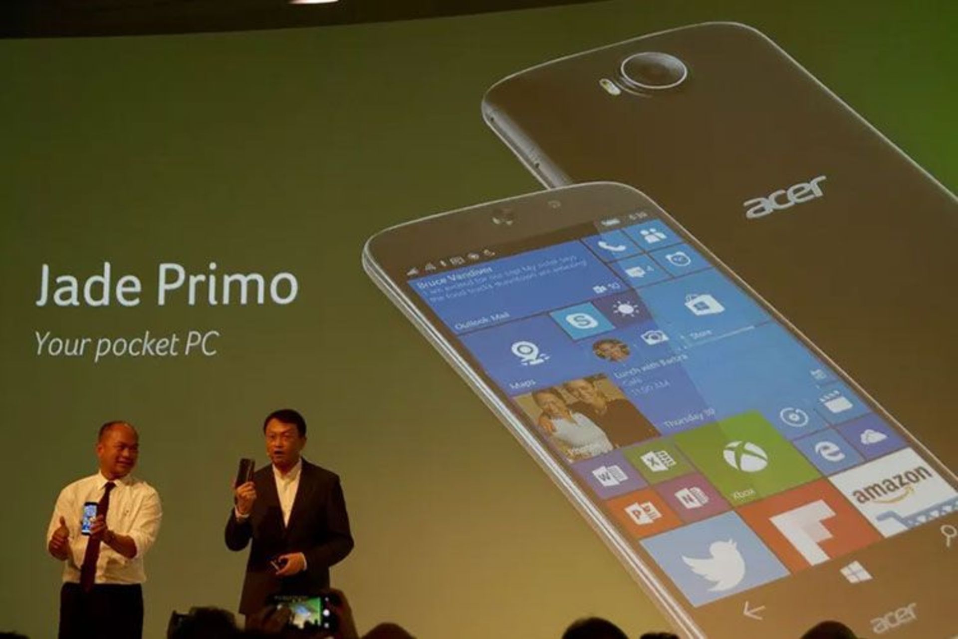 ایسر اولین تلفن پیسی ویندوز ۱۰ خود را در کنفرانس اختصاصیاش در IFA 2015 معرفی کرد. Jade Primo تلفن هوشمندی مبتنی بر ویندوز ۱۰ است که با استفاده از قابلیت Continuum مایکروسافت میتواند به یک پیسی ویندوزی تبدیل شود. این دستگاه به همراه لوازم جانبی متنوع شامل داک، کیبورد و ماوس بیسیم ارائه میشود.