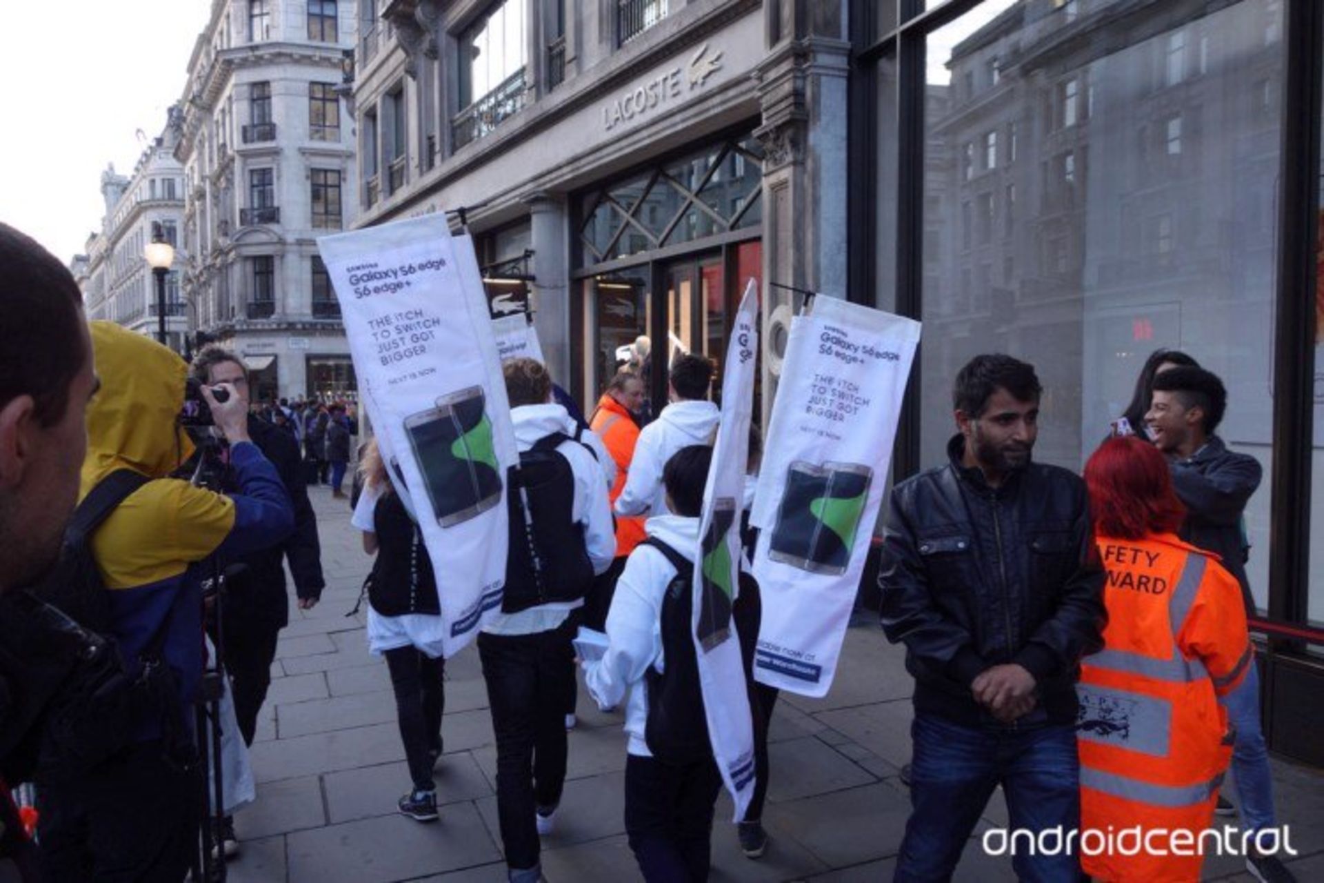 اپل پرچمداران جدید خود را دیروز جمعه در بسیاری از کشورهای دنیا روانهی بازار کرد. همان طور که میدانید در این روز در مقابل اپل استورها صفوف طولانی تشکیل میشود. در یکی از این صفوف در لندن برخی از کارکنان سامسونگ با در دست داشتن بنرهایی سعی در یادآوری محصولات پرچمدار جدید سامسونگ به خریداران آیفون داشتند.