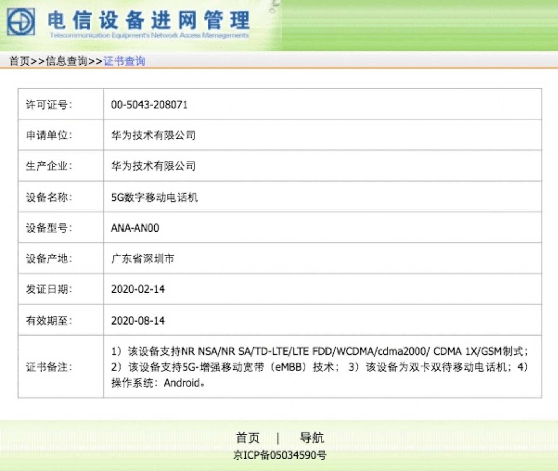 با اینکه انتظار نمیرود پرچمدارهای جدید هواوی، یعنی سری P40، تا آخر مارس معرفی شوند، هر دو گوشی هوشمند پی 40 و پی 40 پرو پیشاپیش در فهرست تأییدیهی ادارهی صدور مجوز کشور چین، TENAA ثبت شدهاند. درواقع در فهرست یادشده، هواوی پی ۴۰ با دو شماره مدلِ ANA-AN00 و ANA-TN00 و هواوی پی ۴۰ پرو با دو شماره مدل ELS-AN00 و ELS-TN00 مشاهده شدهاند. بهنظر میرسد یک مدل از هر گوشی برای عرضه در بازار چین و مدل دیگر برای بازار جهانی باشد. تنها اطلاعات مشاهدهشده در فهرست TENAA این است که هر چهار دستگاه حالت دوگانهی 5G (قابلیت 5G باند زیر ۶ گیگاهرتز و 5G موج میلیمتری) و دو درگاه سیمکارت دارند و سیستمعامل آنها همانطورکه انتظار میرفت، اندروید ۱۰ است.