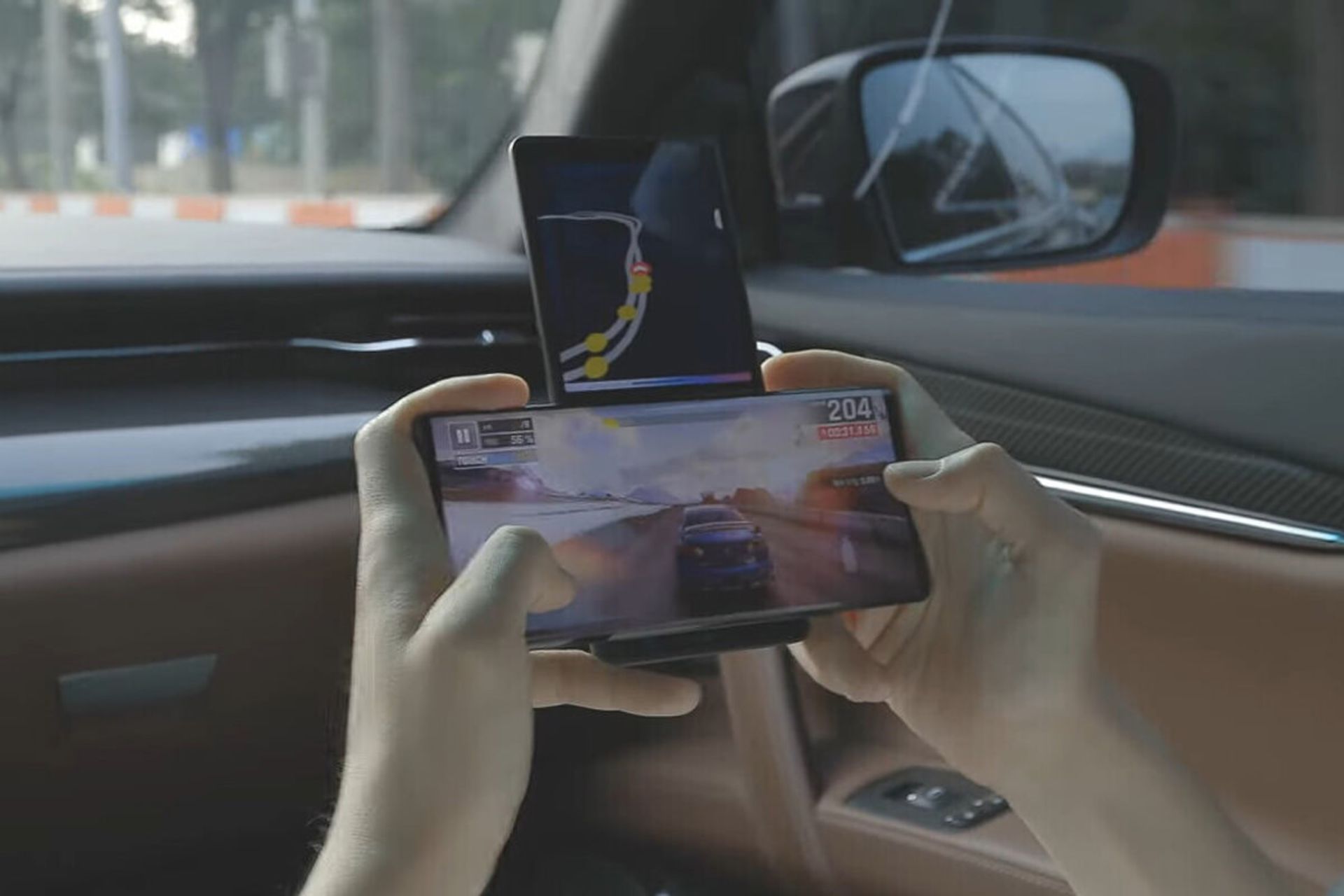 در ویدیوی جدیدی که از الجی وینگ در فضای مجازی قرار گرفته است، میتوان نحوه عملکرد نمایشگر ثانویه را مشاهده کرد. درحالیکه کاربر، بازی اندرویدی را اجرا میکند نقشه راه مسابقه اتومبیلرانی در نمایشگر ثانویه قرار گرفته است. درواقع میتوان گفت که الجی وینگ میتواند تأثیر بسیار جالبی روی گیمینگ موبایل و تجربه بازیهای مختلف داشته باشد.