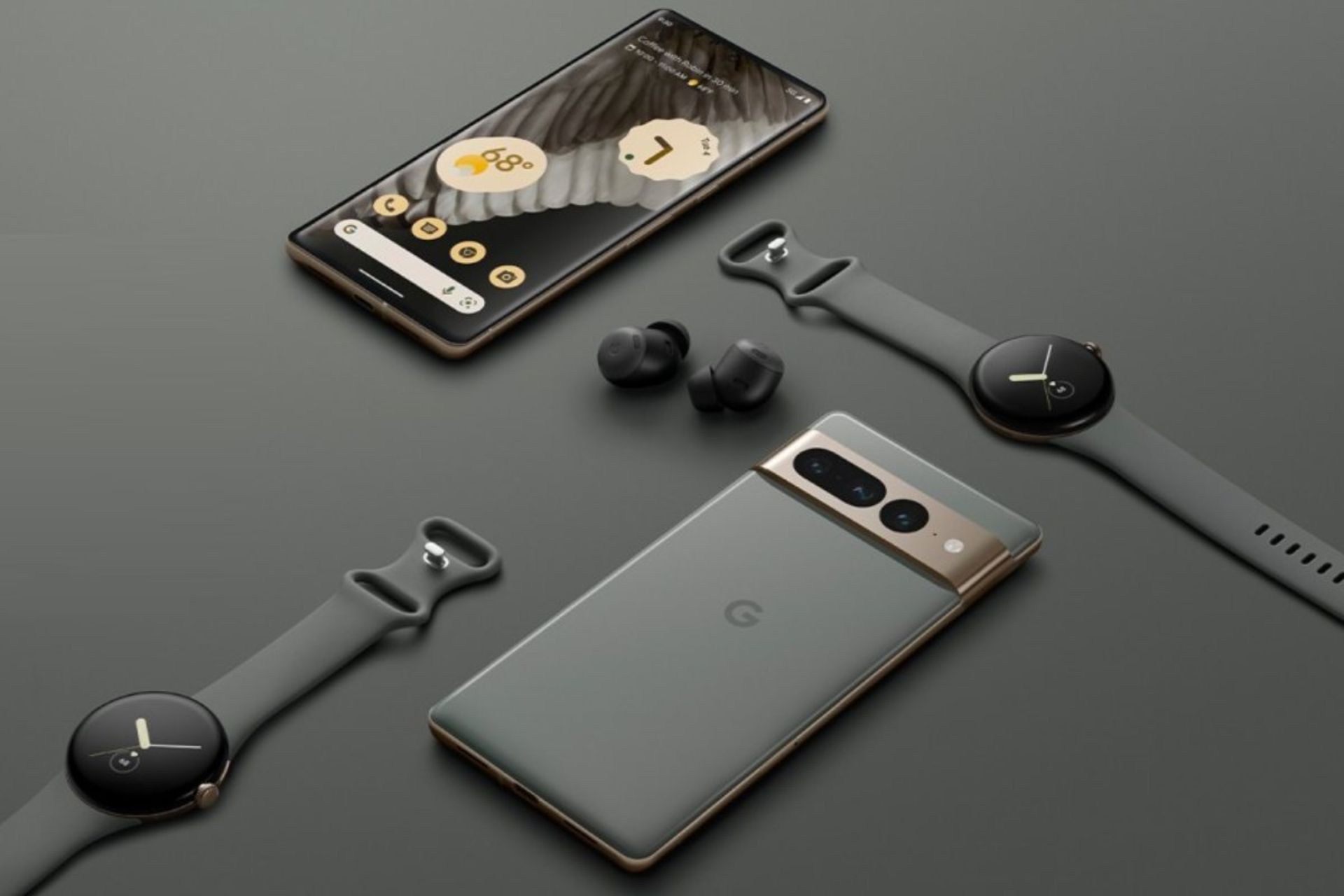 گوگل در حساب کاربری فیسبوک خود برای اولینبار رندری از نمای جلوی پیکسل ۷ پرو بهاشتراک گذاشت. بهنظر میرسد که انحنای صفحهنمایش این دستگاه نسبت به پیکسل ۶ پرو کاهش یافته است. علاوهبراین رندری از بدنهی پشتی این محصول در کنار دو دستگاه پیکسل واچ و یک هدفون پیکسل بادز پرو ارائه شده است.