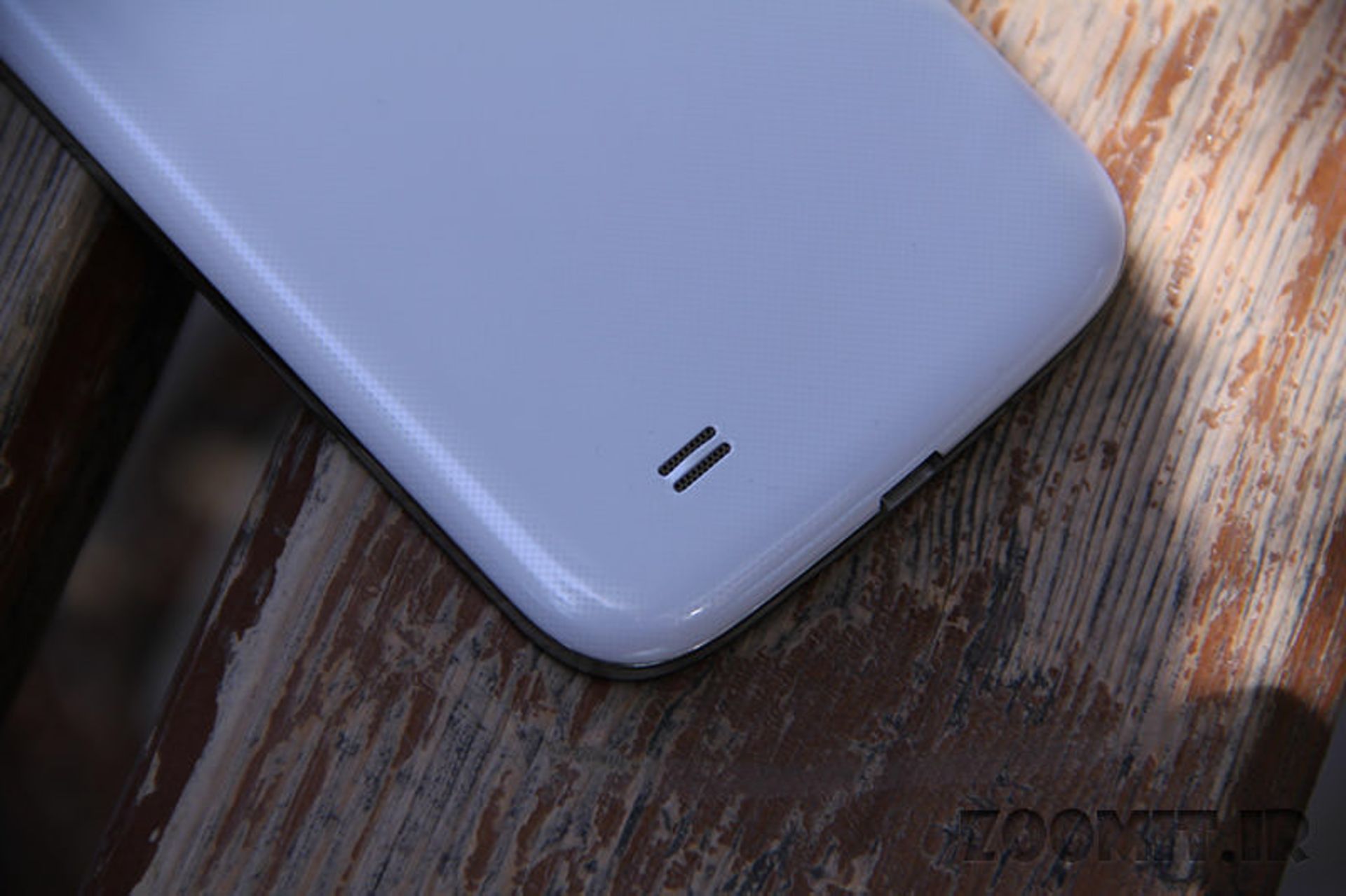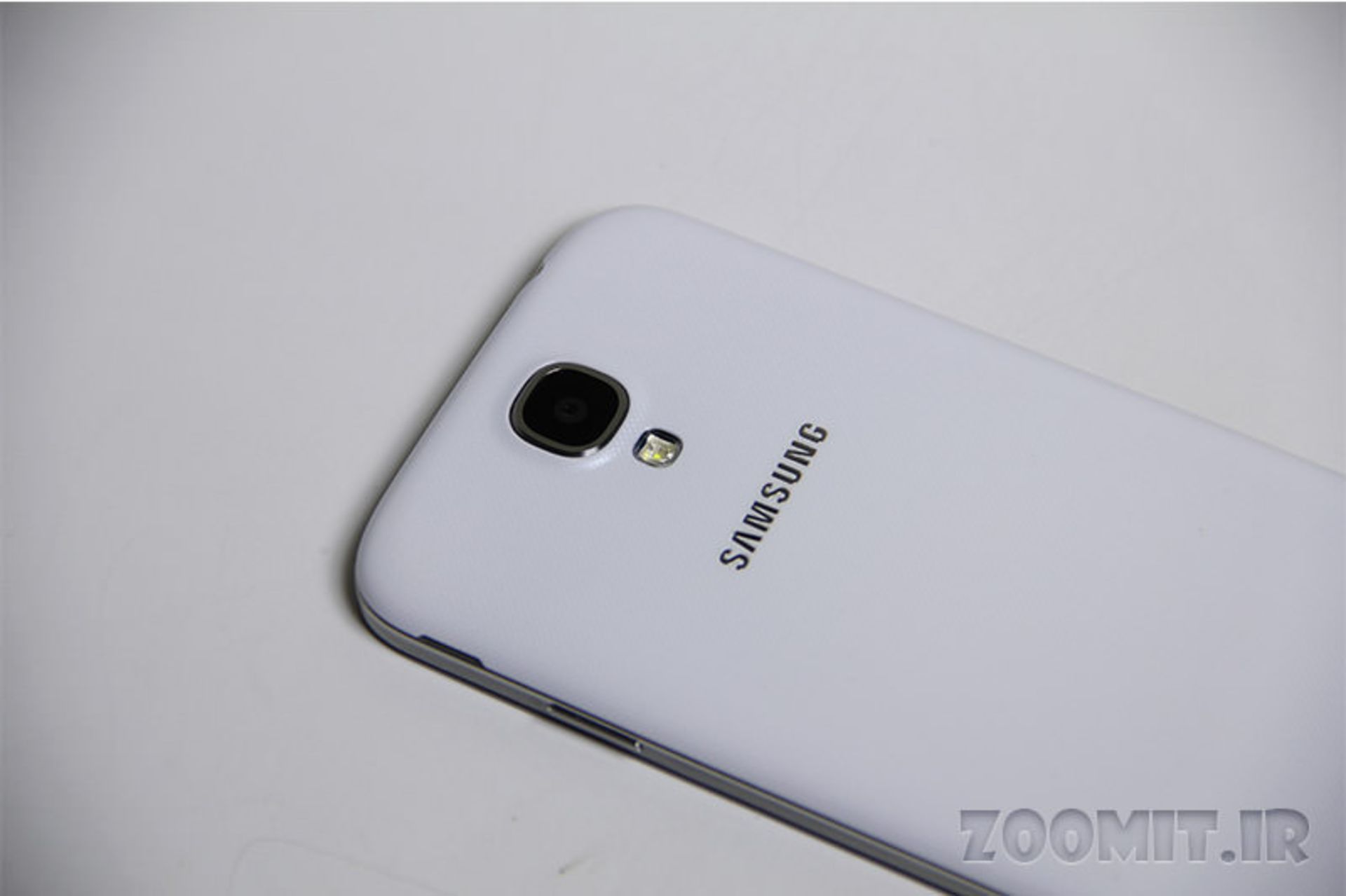 در پشت گوشی نیز در باتری از پلاستیک براق و منعطف و با الگوی نسبتا زیبای نقطهای ساخته شده است. کلیدهای سختافزاری در بهترین جای ممکن در اطراف گوشی قرار داده شدهاند و از نظر زیبایی و کارکرد به مراتب از کلیدهای S3 بهتر عمل میکنند. دکمه فیزیکی پایین دستگاه نسبت به نسل قبل برجسته تر و بزرگتر شده است تا فشار دادن آن به مراتب سادهتر از دکمه گلکسی اس 3 باشد. دو دکمه لمسی نمایش منو و بازگشت به عقب نیز در دو طرف دکمه فیزیکی قرار دارند که تنها در زمان لمس، روشن میشوند. در لبه بالای تلفن علاوه بر دوربین جلو 2.1 مگاپیکسلی، حسگرهای مختلف دستگاه قابل مشاهده هستند. برای آشنایی بیشتر با حسگرهای مختلف گلکسی اس 4 به اینفوگرافی که پیشتر در زومیت منتشر نمودیم مراجعه کنید.