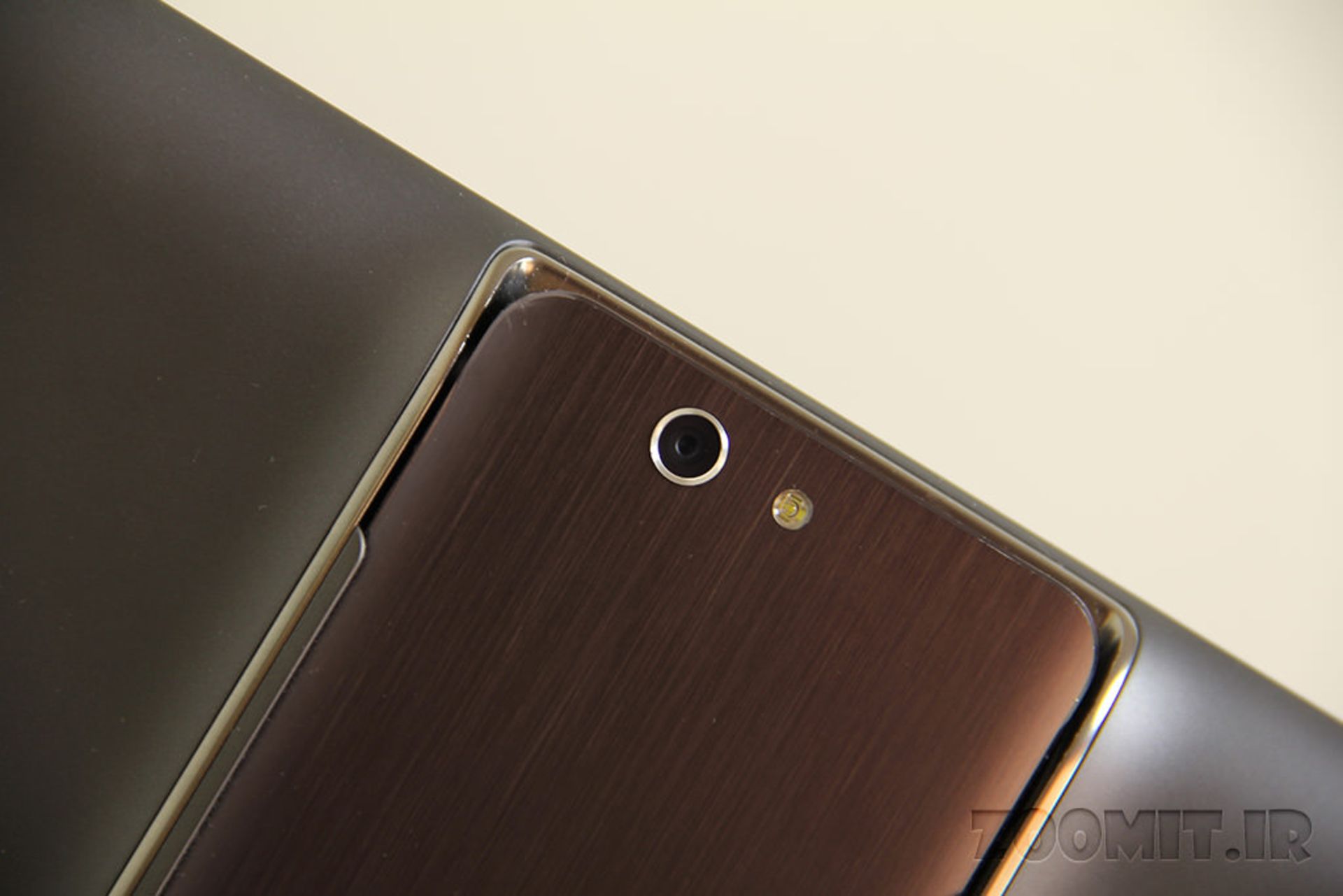 قسمت پشت دستگاه آلومینیوم یکتکه بوده و طراحی سادهای دارد. همچون نسخه قبلی، قاب پشتی اطراف گوشی را نیز در بر میگیرد و فقط قسمتهای بالا و پایین از جنس پلاستیک ساخته شدهاند.