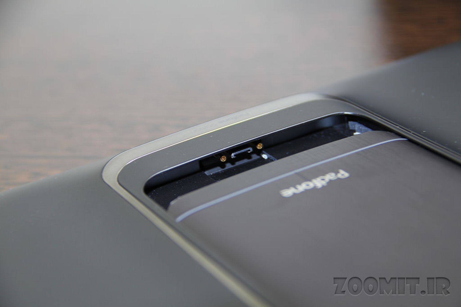 لبه پایینی نیز فقط شامل پورت microUSB/Display Port برای عملیات شارژ و انتقال داده است. در اطراف این پورت دو حفره کوچک قرار داده شده تا در زمان اتصال تلفن به داک استیشن تبلت، ارتباط امن و محکمی ایجاد شود.