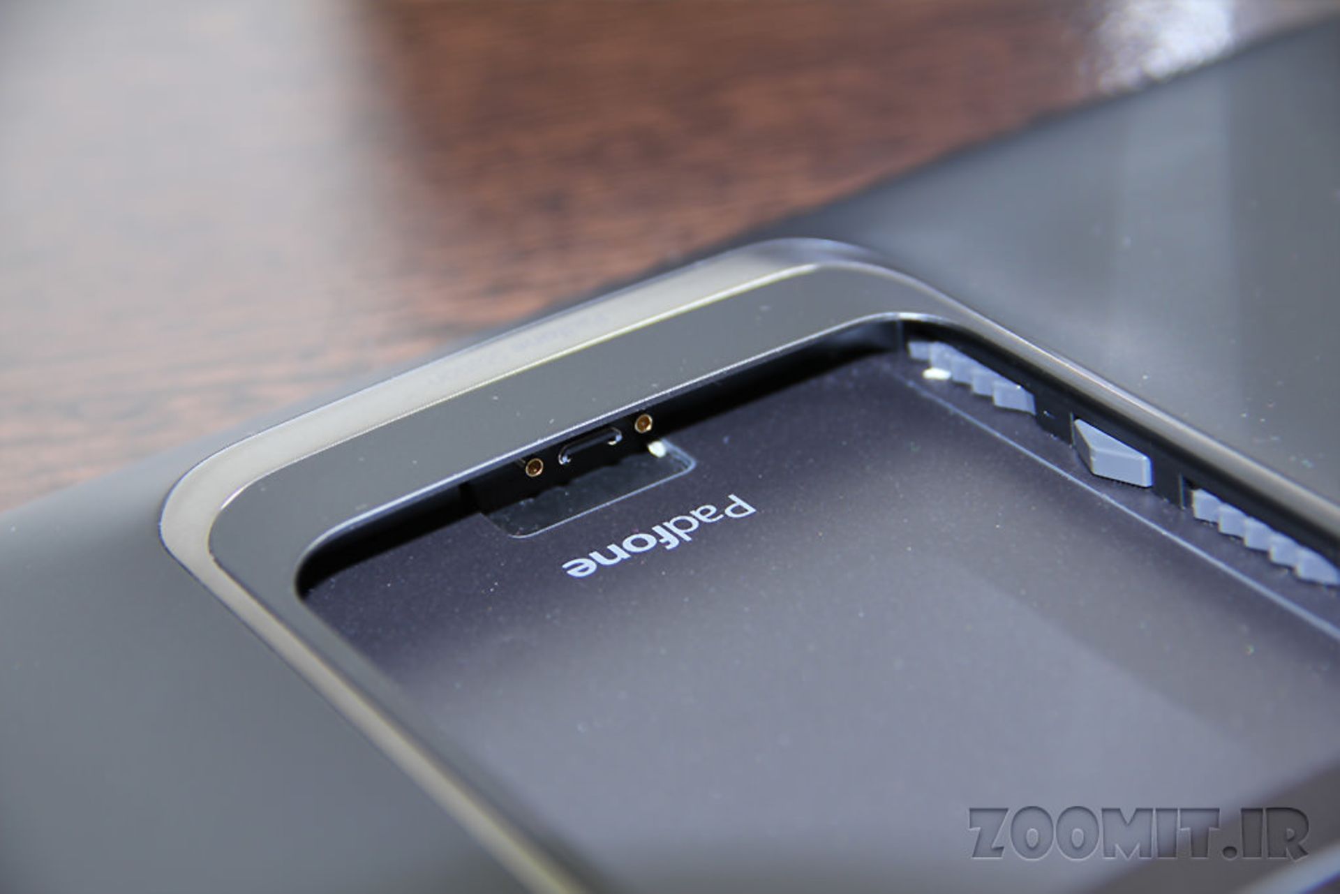 با وجود فرمفکتور خاص پدفون، ارگونومی داک استیشن برای کاربری تبلت نیز همچون گوشی آن بسیار خوب است و به راحتی میتوان بدون هیچ مشکلی با آن کار کرد. در لبه بالای دستگاه، دکمه پاور/قفل صفحه تعبیه شده و نزدیک به آن، در لبه سمت چپ دکمههای تغییر حجم صدا قرار دارند. لبه پایینی دستگاه خالی از هر دکمه یا درگاهی است و در لبه سمت راست نیز فقط درگاه MicroUSB/Display Port قابل مشاهده است.
