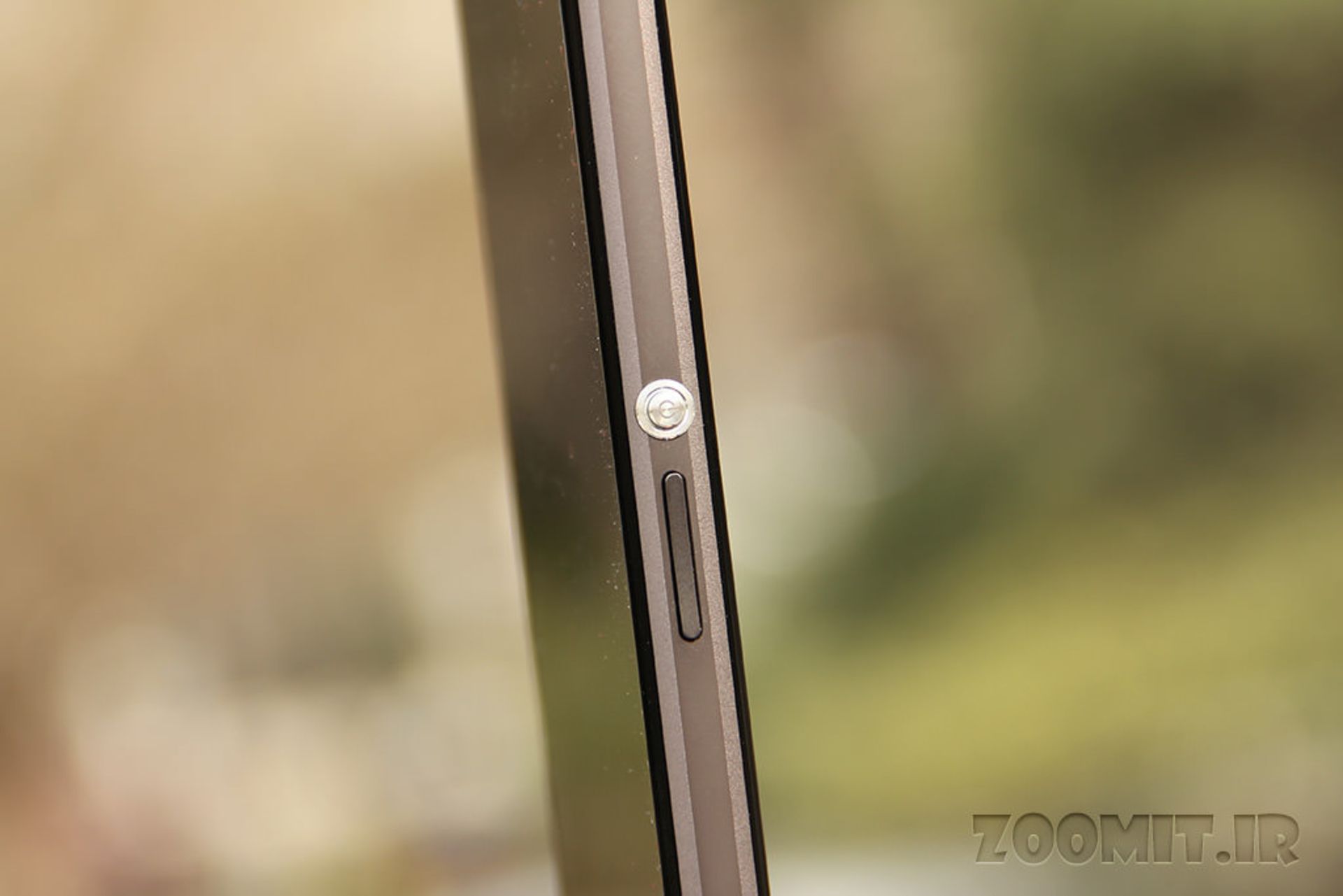 در لبه سمت راست دکمه پاور/قفل فلزی قرار گرفته که کمی سفت و محکم است و برای باز کردن قفل نمایشگر باید آن را کمی محکمتر از سایر گوشیها بفشارید. در زیر آن دکمه تغییر حجم صدا و کمی پایینتر نیز دکمه اختصاصی دوربین قرار گرفته است.