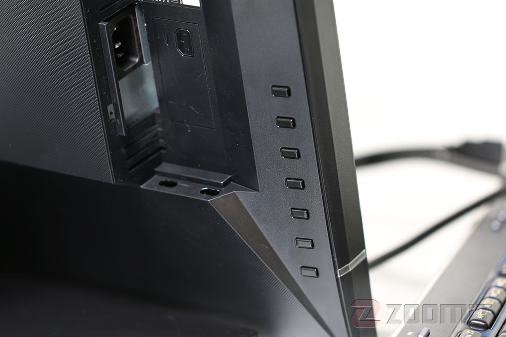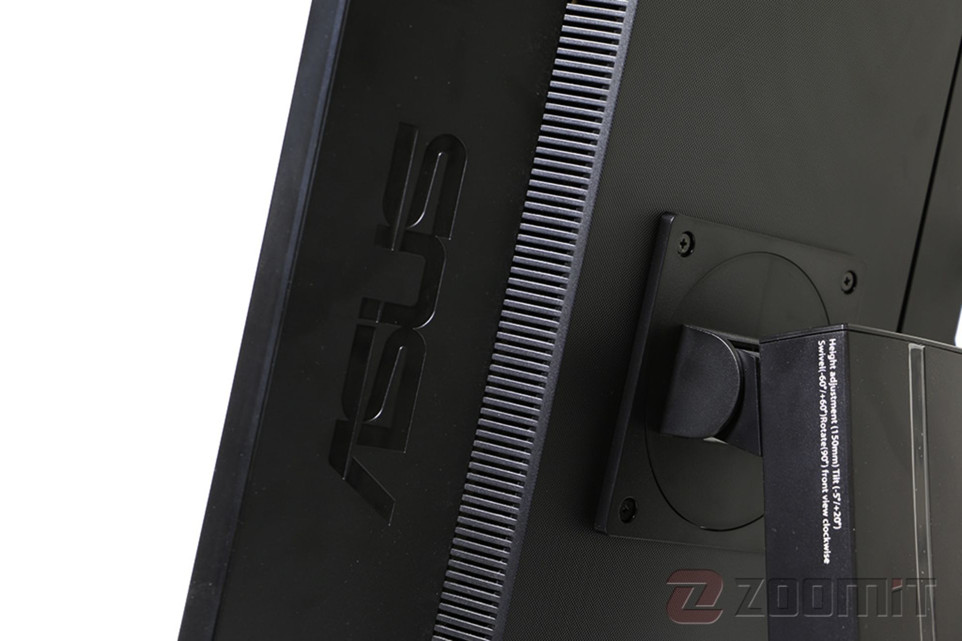 در لبهی پایین نمایشگر، نشانگر دکمههای OSD وجود دارند، اما دکمهی مربوط به آنها در قسمت پشت دستگاه قرار گرفته است. معمولا دکمهها در لبهی پایین یا جلو، جای داده میشوند، اما ایسوس آنها را به پشت دستگاه منتقل کرده که این موضوع باعث میشود به سختی بتوانید منوی OSD را کنترل کنید و به تنظیمات مدنظر خود دسترسی داشته باشید. کار کردن با منوی OSD مشکل است و ازآنجاکه دکمهها در قسمت پشت و نشانگر مربوط به هر کدام در لبهی جلوی دستگاه جای داده شده است به کرات اتفاق میافتد که دکمهای را به اشتباه بهجای دیگری فشار دهید.