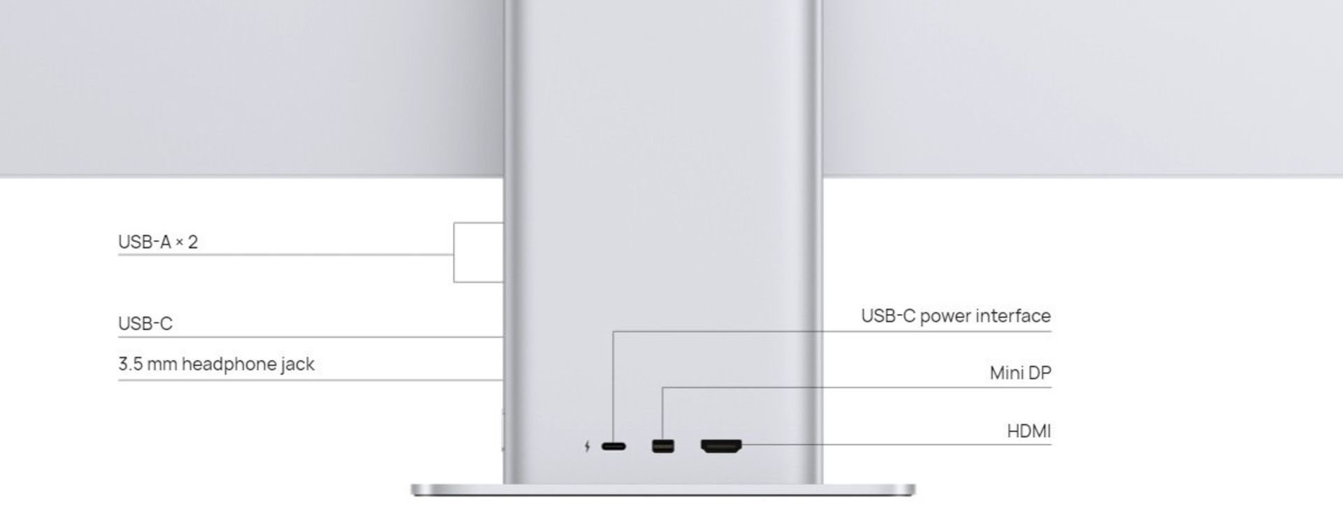 مانیتور میت ویو بهلطف برخورداری از درگاه USB-C میتواند هابی برای شارژ (۶۵ وات) دستگاههای دیگر باشد. درواقع، میتوانید گوشی هوشمند یا دستگاههای دیگر را به میت ویو متصل و آن را شارژ کنید. در پنل پشتی میت ویو درگاههای متعددی قرار گرفته است؛ ازجمله مینی دیسپلیپورت ۱.۲ و HDMI 2.0. نرخ نوسازی باتوجهبه درگاه متفاوت خواهد بود؛ بهگونهای که درگاه مینی دیسپلیپورت ۱.۲ تا نرخ نوسازی ۶۰ هرتزی و درگاه HDMI 2.0 تا نرخ نوسازی ۴۵۰ هرتزی را پشتیبانی میکند.