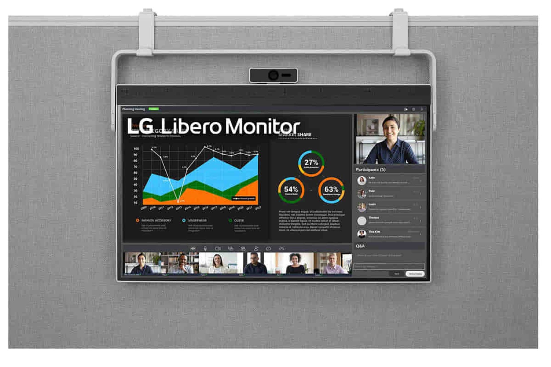 مانیتور لیبرو 27BQ70QC مخصوص کار در دفاتر اداری یا خانگی است. اگرچه صفحهنمایش لیبرو 27BQ70QC ویژگی متمایزی ندارد، از گزینههای جالبی بهرهمند است. مانیتور جدید ال جی را میتوان مثل تلویزیون هوشمند بدون پایه استفاده کرد یا آن را همانطورکه در تصاویر مشخص است، روی دو براکت قرار داد. همچنین، ال جی یک وبکم Full HD جداشدنی برای تماسهای کنفرانسی برای لیبرو 27BQ70QC در نظر گرفته است.