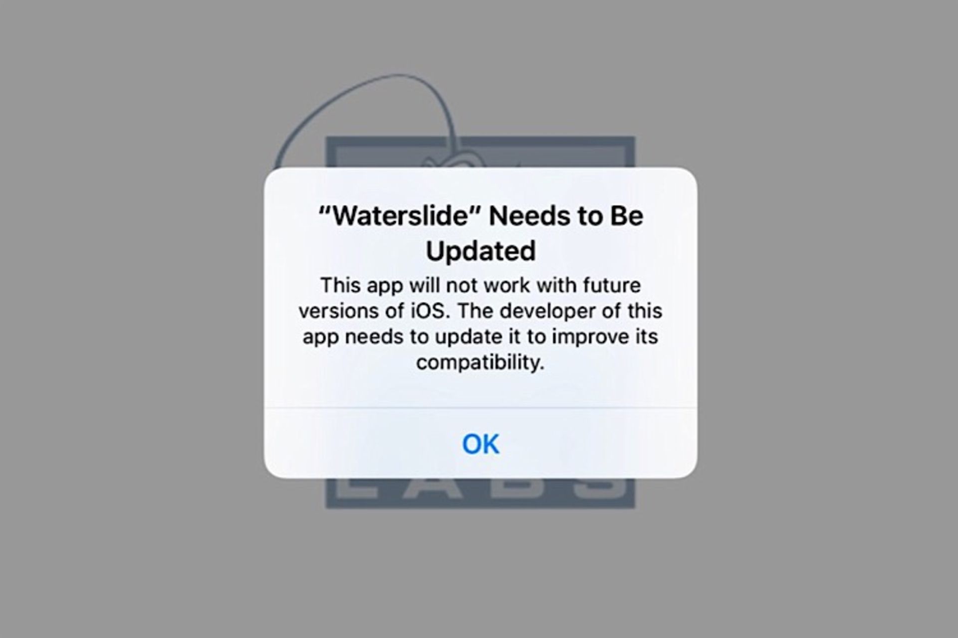 Waterslide باید بهروزرسانی شود.این اپلیکیشن در نسخههای بعدی آیاواس کار نخواهد کرد. توسعهدهندهی این اپ باید آن را بهروزرسانی کند تا با نسخههای بعدی آیاواس سازگاری داشته باشد.