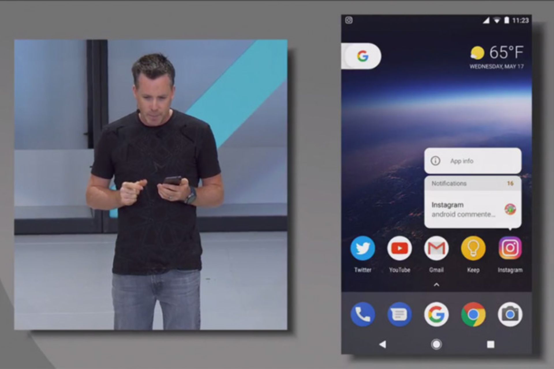 دیو بورک، نایبرئیس بخش مهندسی اندروید، در جریان این مراسم، نحوهی عملکرد Notification Dots را برای اپلیکیشن اینستاگرام نشان داد. برای او کامنتی آمده بود که بدون ورود به پنل هشدارها، نقطه یا حباب مورد نظر را حذف کرد. نکتهی مهم این است که استفاده از ویژگی جدید اندروید O کاملا اختیاری خواهد بود.