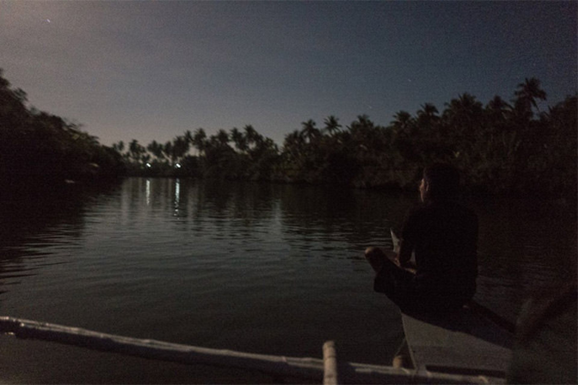 در تصویر زیر تصویر عکاسی را میبینید که با یک قایق کوچک در یک رودخانه آرام سفر میکند و در حال تلاش برای فوکوس است. ماه قرص کامل است، عکاس در سایه درختان پنهان شده تا حشرات شبتاب را ببیند.