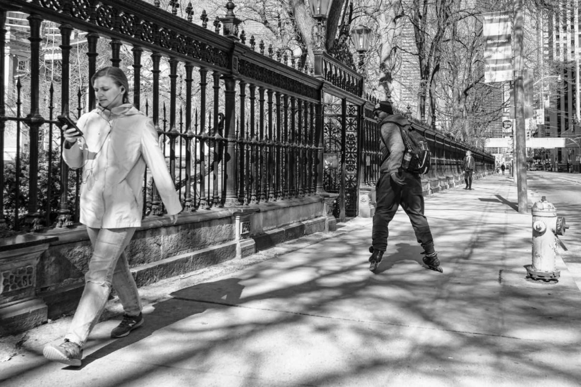 عکاس میتواند با ترفندهایی مخاطبان عکس خود را فریب دهد. عکسها میتوانند اتفاقاتی را نشان دهند که ممکن است واقعی نباشند. مثلا در تصویر بالا ممکن است اینطور فکر کنید که فرد اسکیتسوار رو به جلو حرکت میکند و به سمت عقب به رهگذر نگاه میکند؛ درحالیکه اینطور نیست.