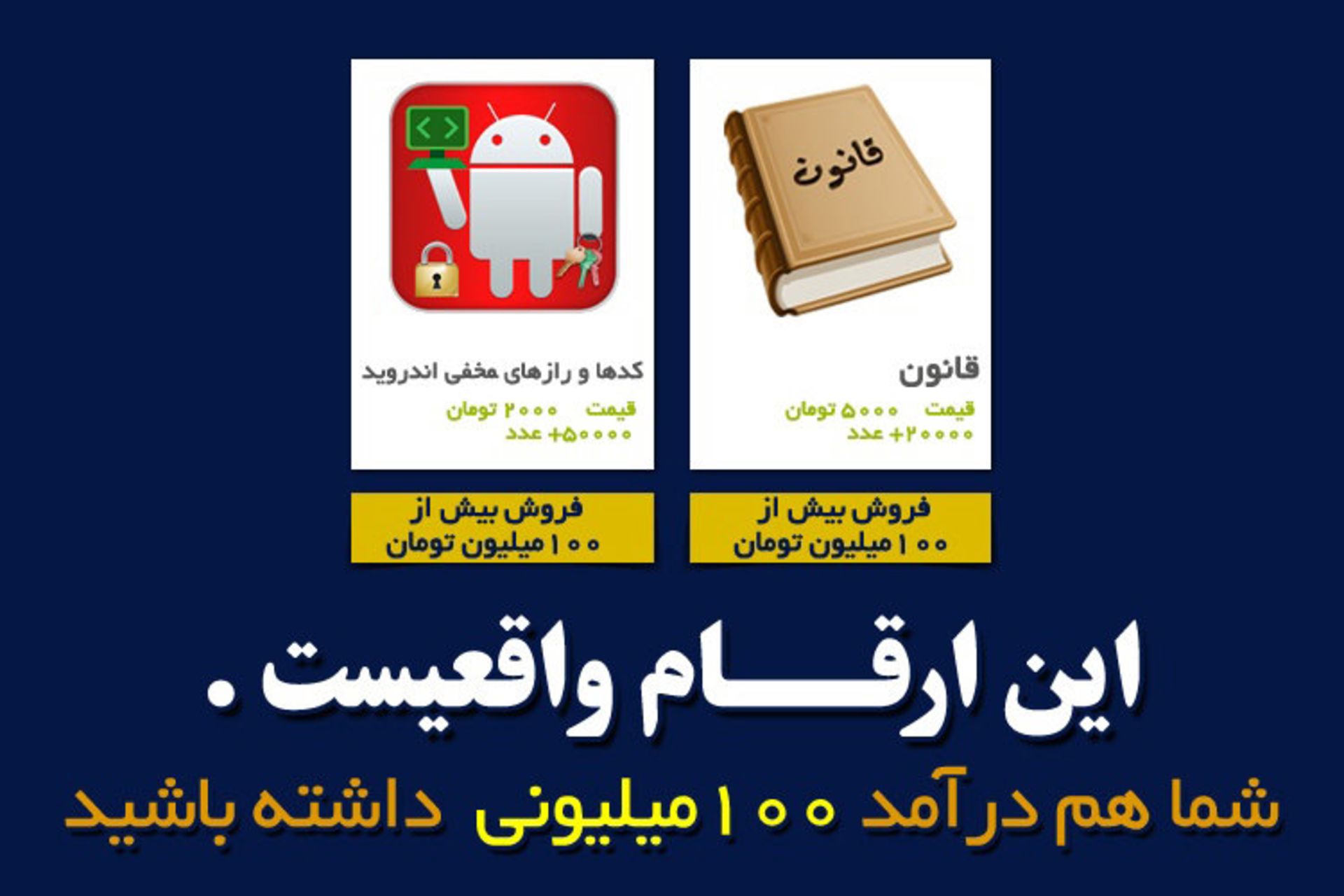 اپلیکیشن کدها و رازهای مخفی اندروید، با قیمت ۲۰۰۰ تومان در بازار عرضه شده است و تا به امروز بیش از ۵۰ هزار فروش داشته است. با یک حساب سرانگشتی میتوان متوجه شد که توسعه دهنده این اپلیکیشن بیش از ۱۰۰ میلیون تومان درآمد کسب کرده است!