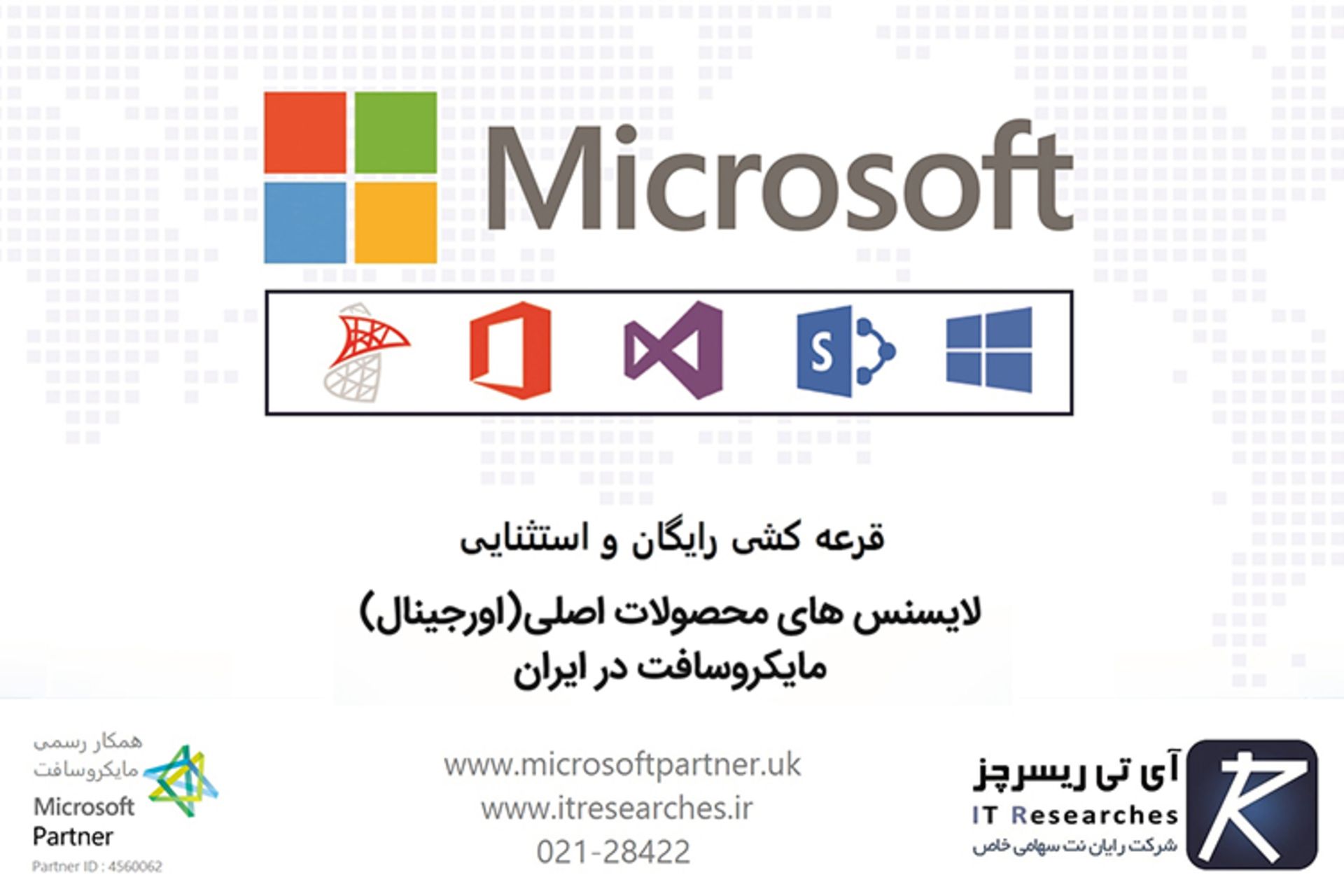 به گزارش شرکت رایان نت سهامی خاص (آی تی ریسرچز)، این شرکت که تنها همکار تجاری رسمی مایکروسافت در ایران (Partner ID: 4560062) است، یک قرعهکشی جهت آشنایی عموم مردم با مزایای نسخههای اصلی مایکروسافت و همچنین گسترش فرهنگ حمایت از حقوق تولیدکنندگان نرمافزاری در ایران برگزار میکند. برای شرکت در این قرعهکشی نیازی به خریداری محصولات مایکروسافت نیست، بلکه کافی است علاقهمندان برای ثبتنام رایگان در قرعهکشی به لینک https://microsoftlicense.com/fa/ مراجعه کنند.