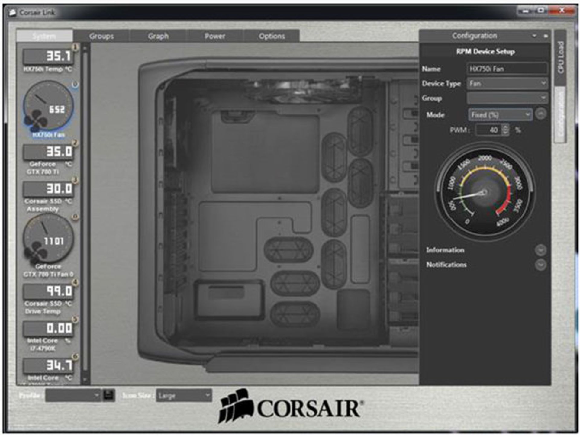 از ویژگی های بسیار جالب پاور کرسیر سری HXi این است که دسترسی کاربران را به کنترل و مانیتورینگ پاور میسر کرده است، بدین ترتیب با تعبیه محل USB در پشت پاور که با کابل USB به مادربرد وصل میشود و از طریق نرم افزار Corsair-Link قادر به رصد پی در پی دما، قدرت در حال لودشدن، سرعت فن و تنظیم آن، میزان جریان های خروجی و... خواهید بود.