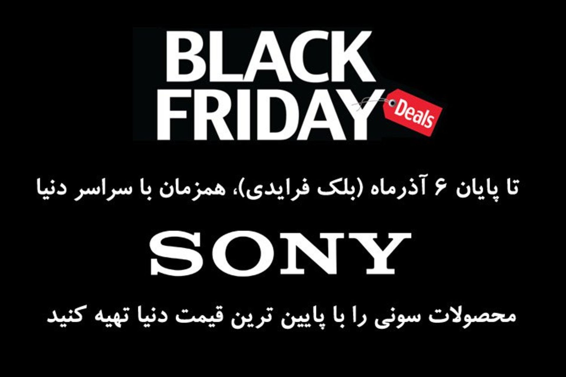 فروشگاه اینترنتی تکنولایف نیز از هماکنون تا ساعت ۲۳:۵۹ روز جمعه مورخ ۶ آذرماه، حراج شگفتانگیزی را برای برخی محصولات سونی در نظر گرفته است و در این فروش ویژه، هزینه پست پیشتاز جهت ارسال محصولات به خارج از شهر تهران نیز کاهشیافته است. محصولاتی که در این فروش ویژه عرضهشدهاند، کلیه قیمتها معتبر هستند و اشتباهی در قیمتها وجود ندارد و کلیه کالاهای عرضهشده در تکنولایف، اصلی بوده و خریدار شما از "هفت روز ضمانت برگشت وجه" برخوردار هست و حتی در صورت لزوم میتوانید با هماهنگی قبلی جهت دریافت کالا به تکنولایف مراجعه کنید.