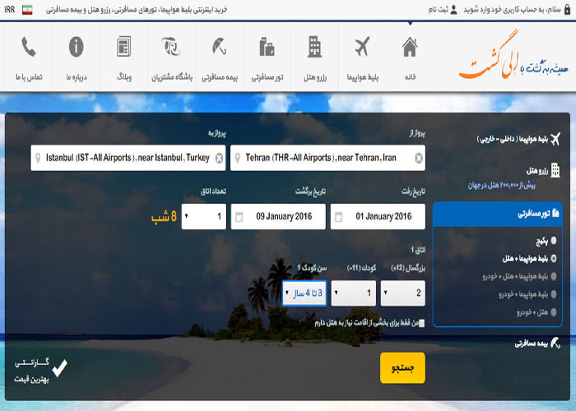 جامعترین سایت رزرو آنلاین پرواز، هتل و تورهای خارجی در ایران