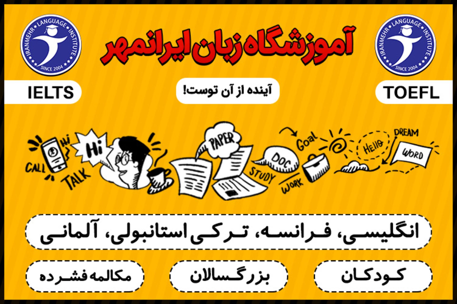آموزشگاه زبان ایرانمهر با ۱۶ سال سابقه، یکی از بهترین مؤسسات آموزش زبان‌های خارجی در ایران است.
