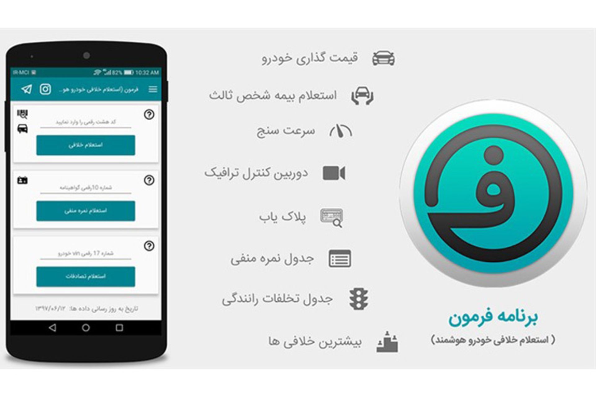 ۱۴ ویژگی برنامه‌ی فرمون (استعلام هوشمند خلافی خودرو)