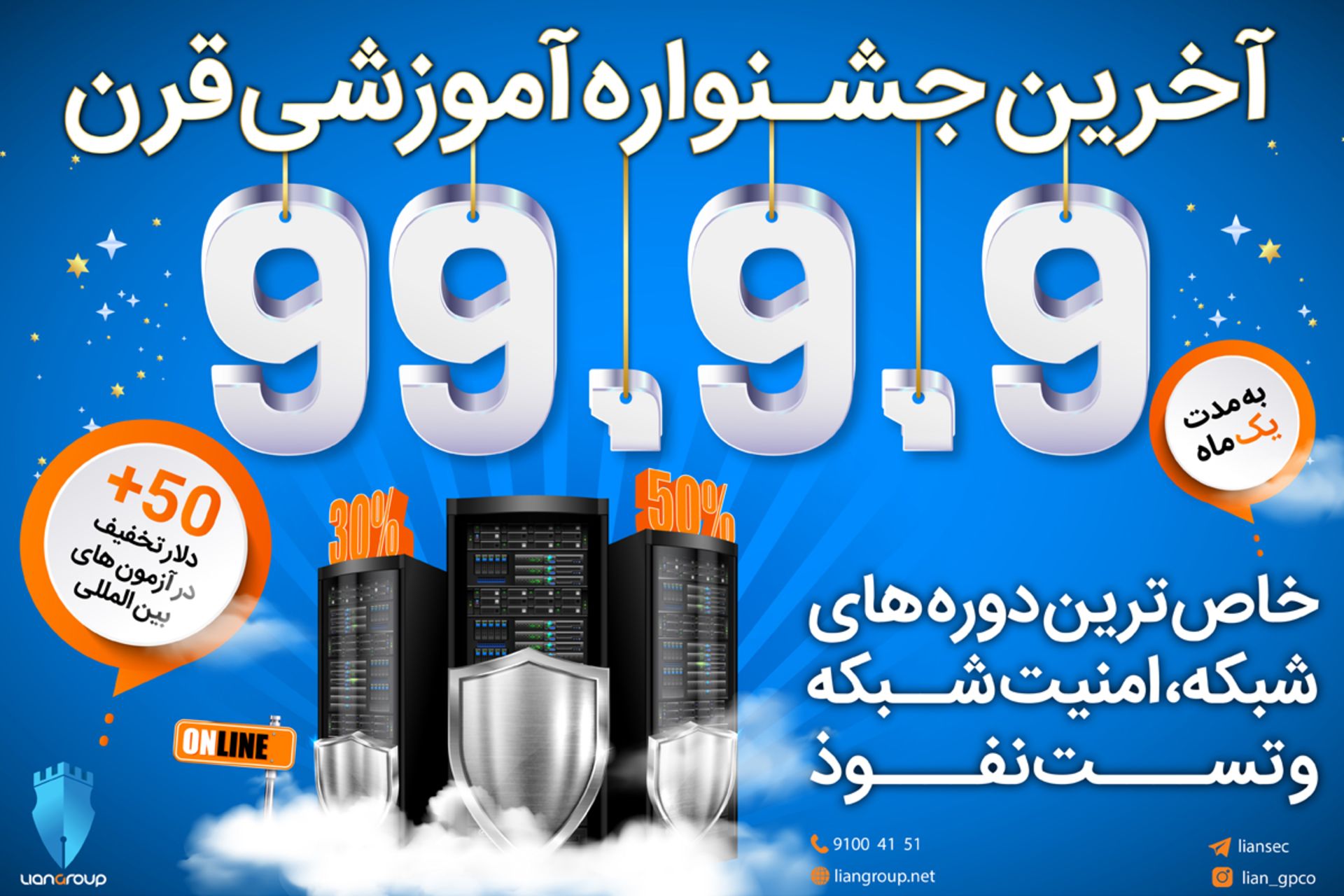این جشنواره یک فرصت طلایی برای تمامی افراد علاقهمند به حوزهی امنیت و شبکه و همچنین کارشناسان و متخصصان این حوزه است تا بتوانند با قیمتهای مقرونبهصرفه در دورههای آموزشی دلخواه ثبت نام کنند. این جشنواره، از تاریخ ۹۹/۰۹/۰۹ آغاز میشود و تا ۹۹/۱۰/۰۹ ادامه خواهد داشت. دانشجویان میتوانند در این بازه زمانی با مراجعه به وبسایت لیان، در تمامی دورههای مد نظر خود با استفاده از این تخفیف ثبت نام کنند.