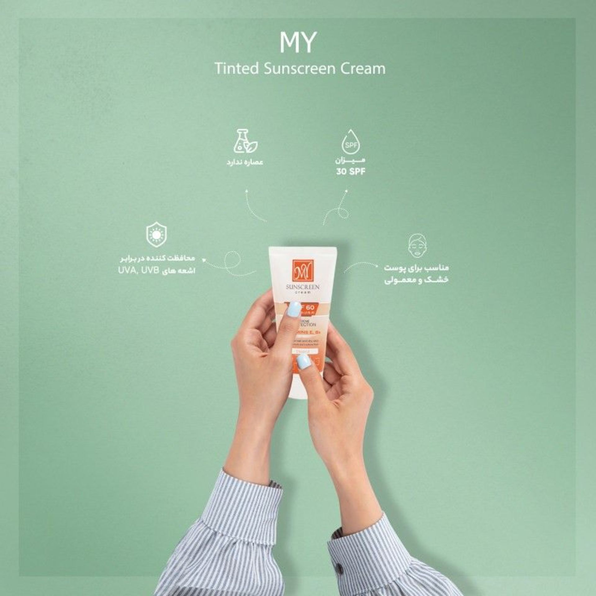 کرم ضد آفتاب مای دارای بافت سبکی بوده و باعث ایجاد سنگینی روی پوست نمیشود. قابلاستفاده برای سنین 12 به بالا بوده و دارای انواع رنگی و بیرنگ است. عدد SPF این کرم متفاوت بوده و میتوانید آن را انتخاب کنید.